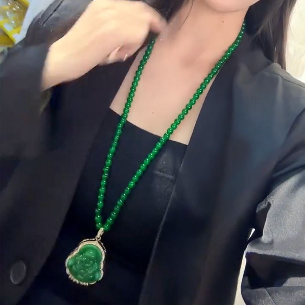 仿翡翠绿色笑口常开弥勒佛项链女时尚爆款显白毛衣链长款佛祖