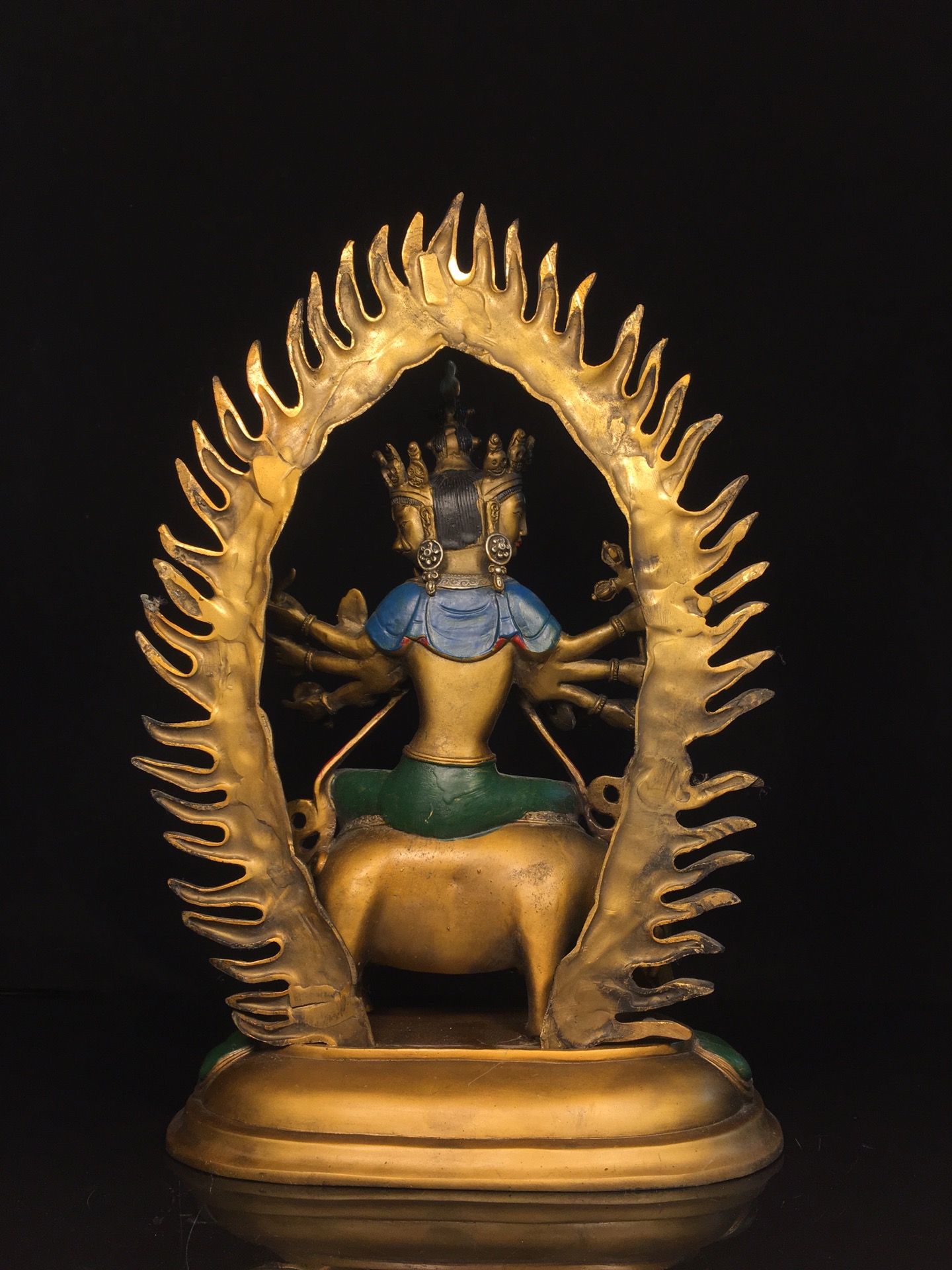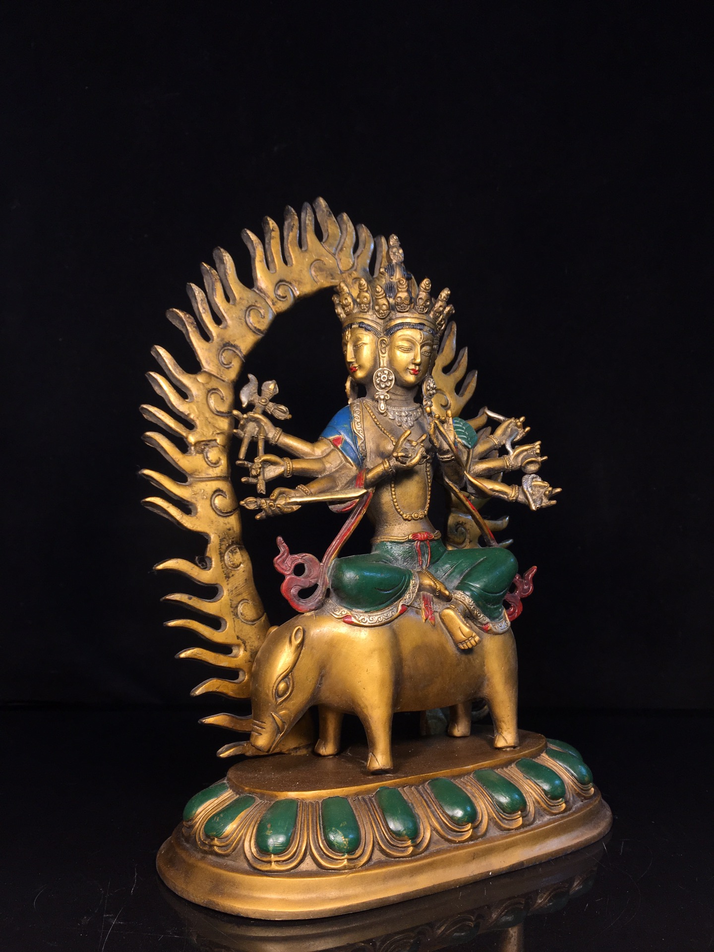 黄铜彩绘光明佛母复古铜器摩利支佛母像客厅佛堂供佛桌面装饰摆件