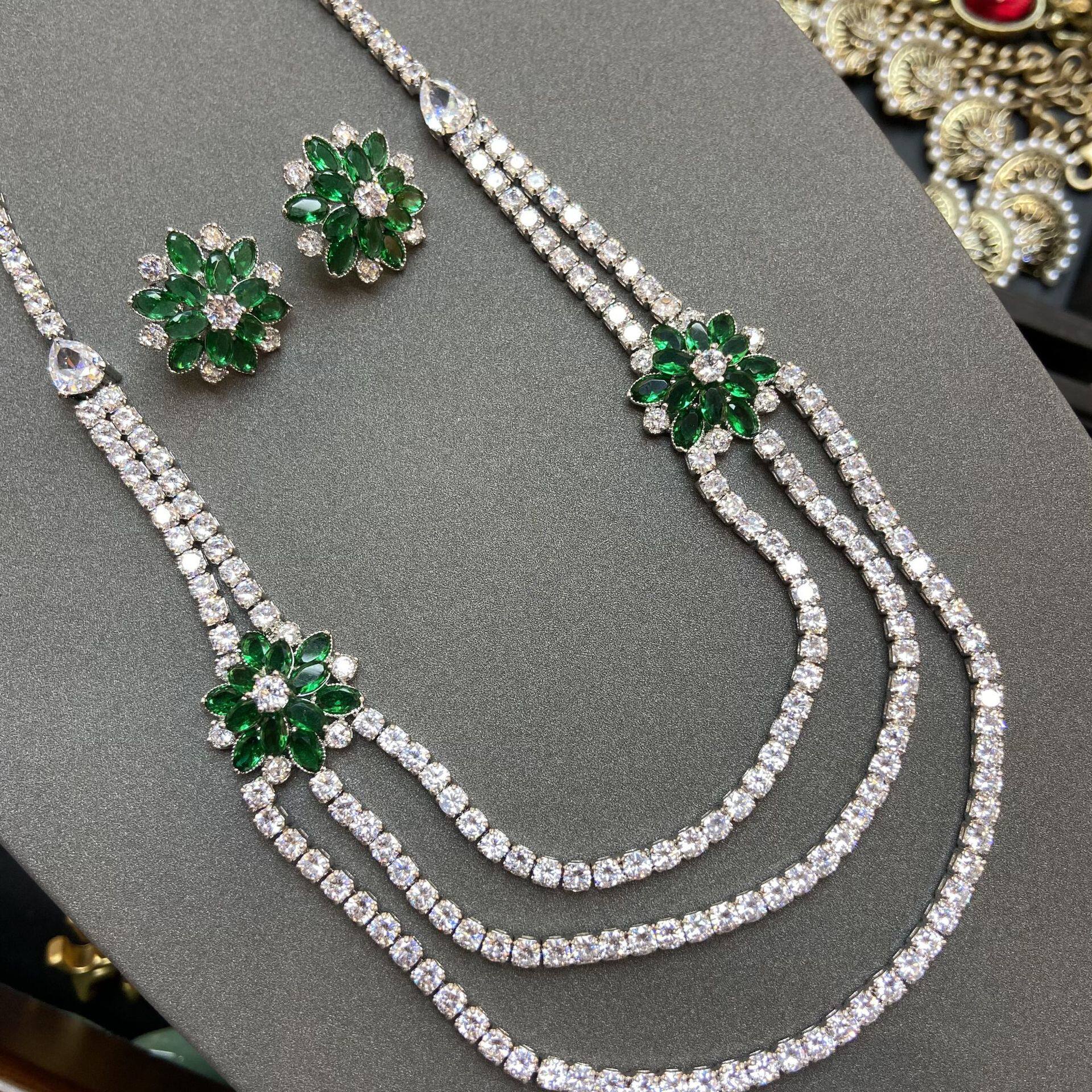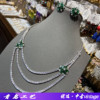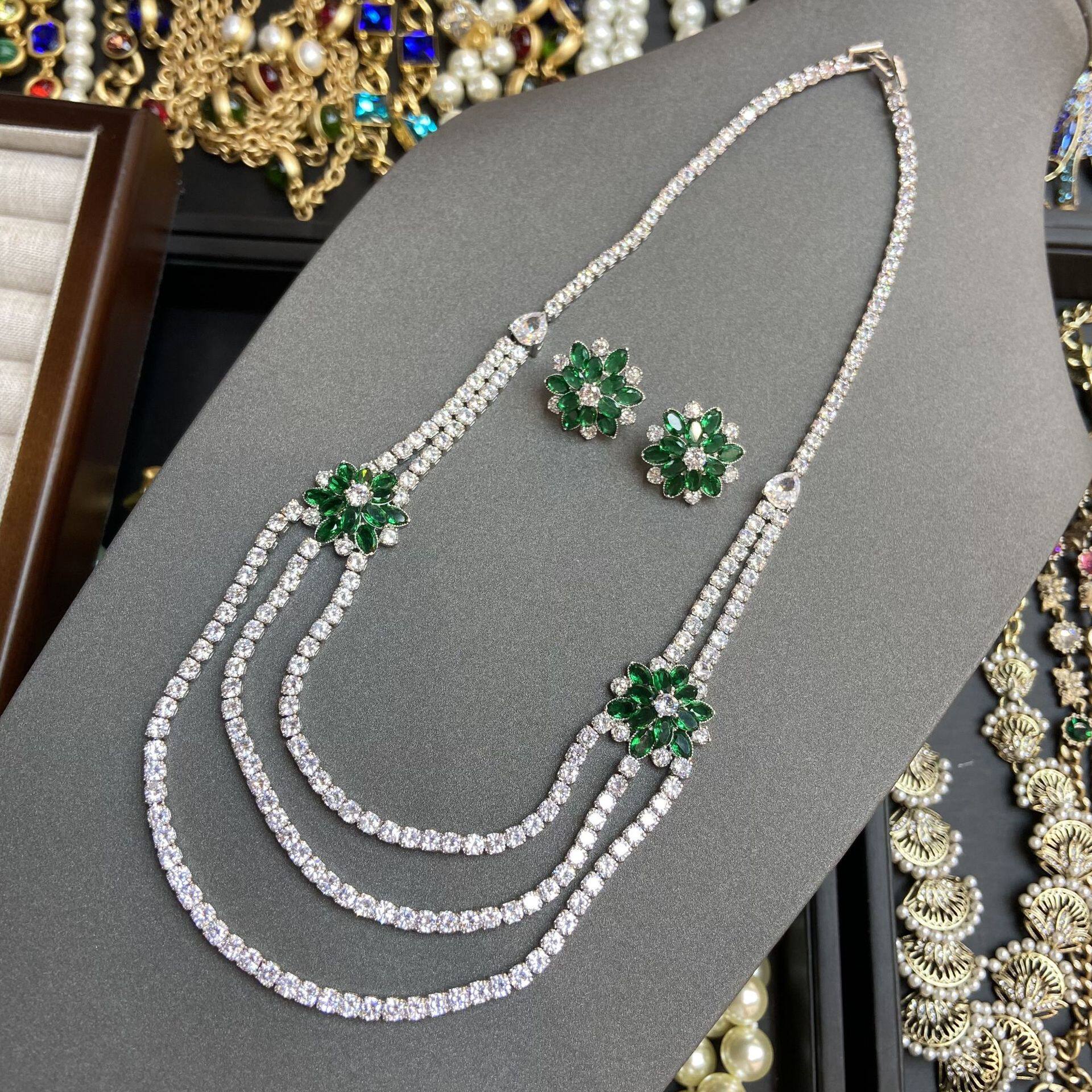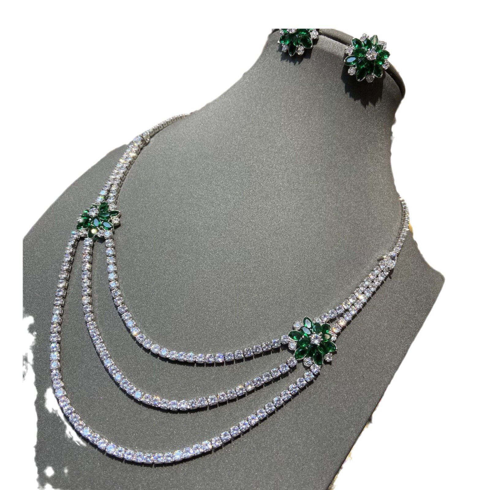 网红双层绿色菊花爪链镶钻锆石项链轻奢女士百搭菊花耳环套装