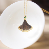 天然沉香银杏叶吊坠女款镀S925银项链古风扇形长方形平安无事牌