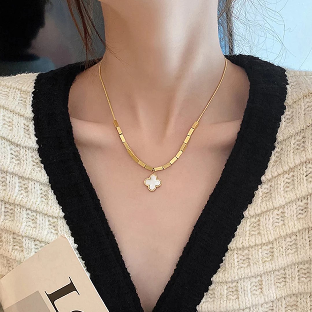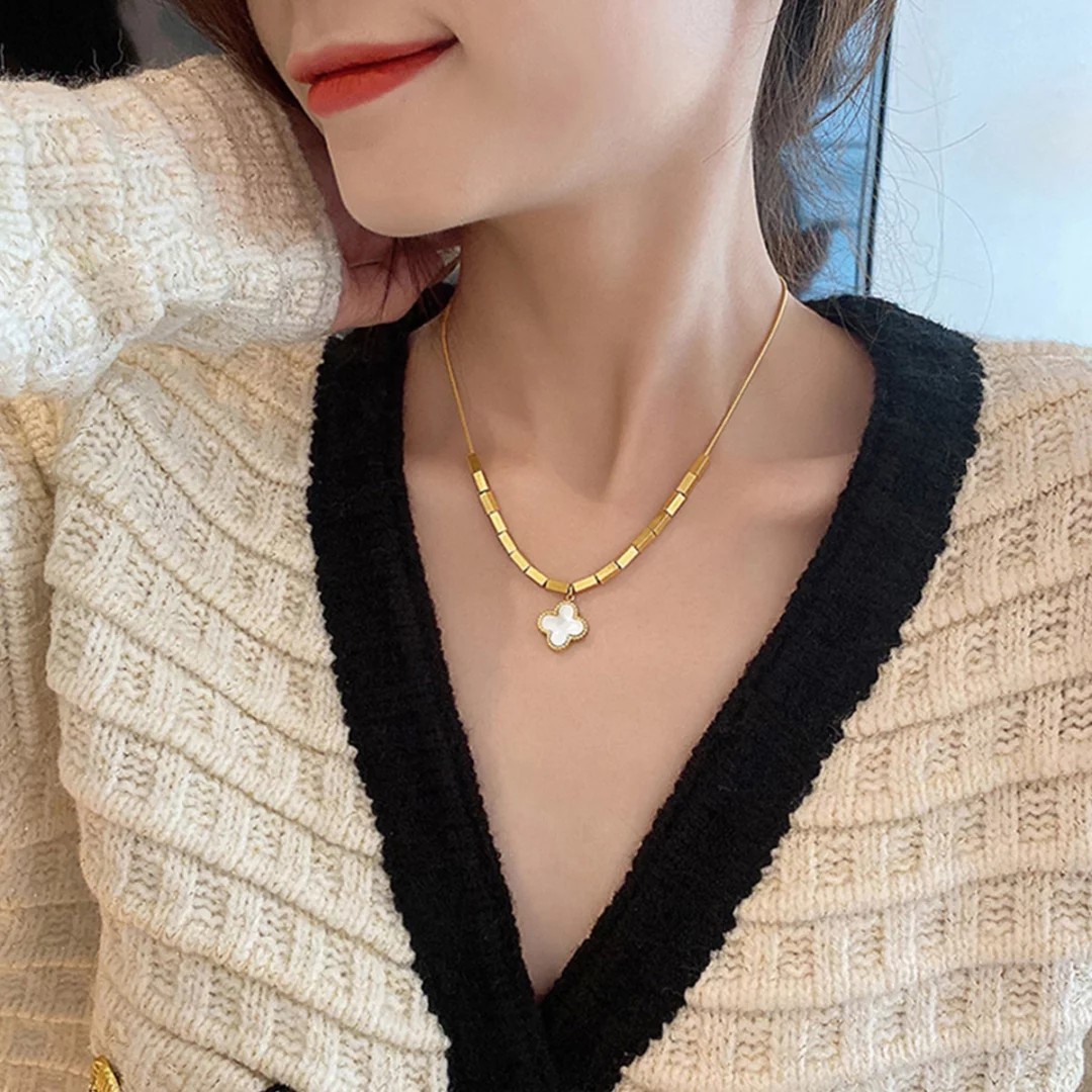 新款双面四叶草轻奢项链女高级感小众设计毛衣链气质简约百搭配饰