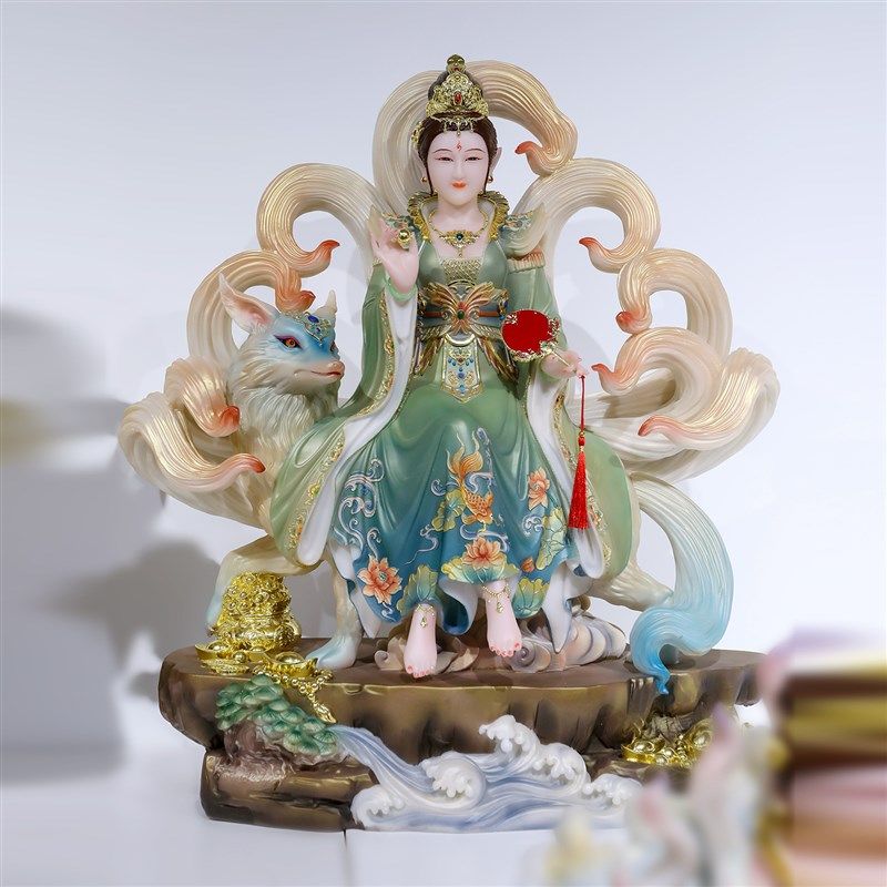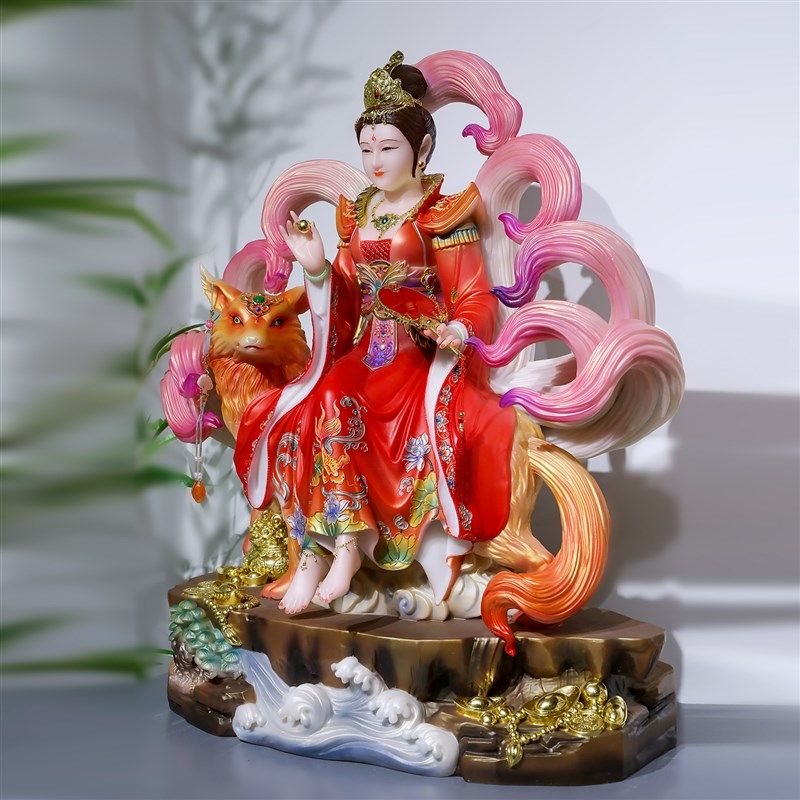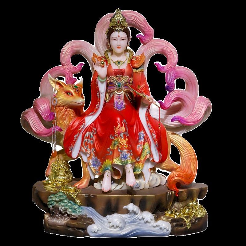速发九娘狐娘尾神像狐摆件家用娘福汉白玉彩绘狐皇狐后九姑祝妲己