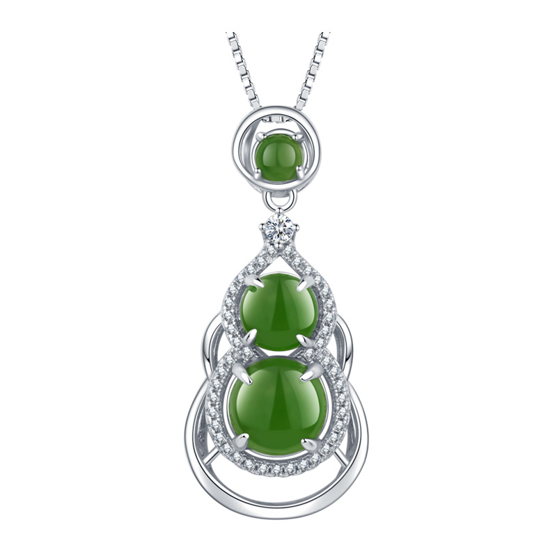 葫芦精致碧玉玉吊坠项链925银镶嵌和田玉挂件饰品轻奢送女友礼物
