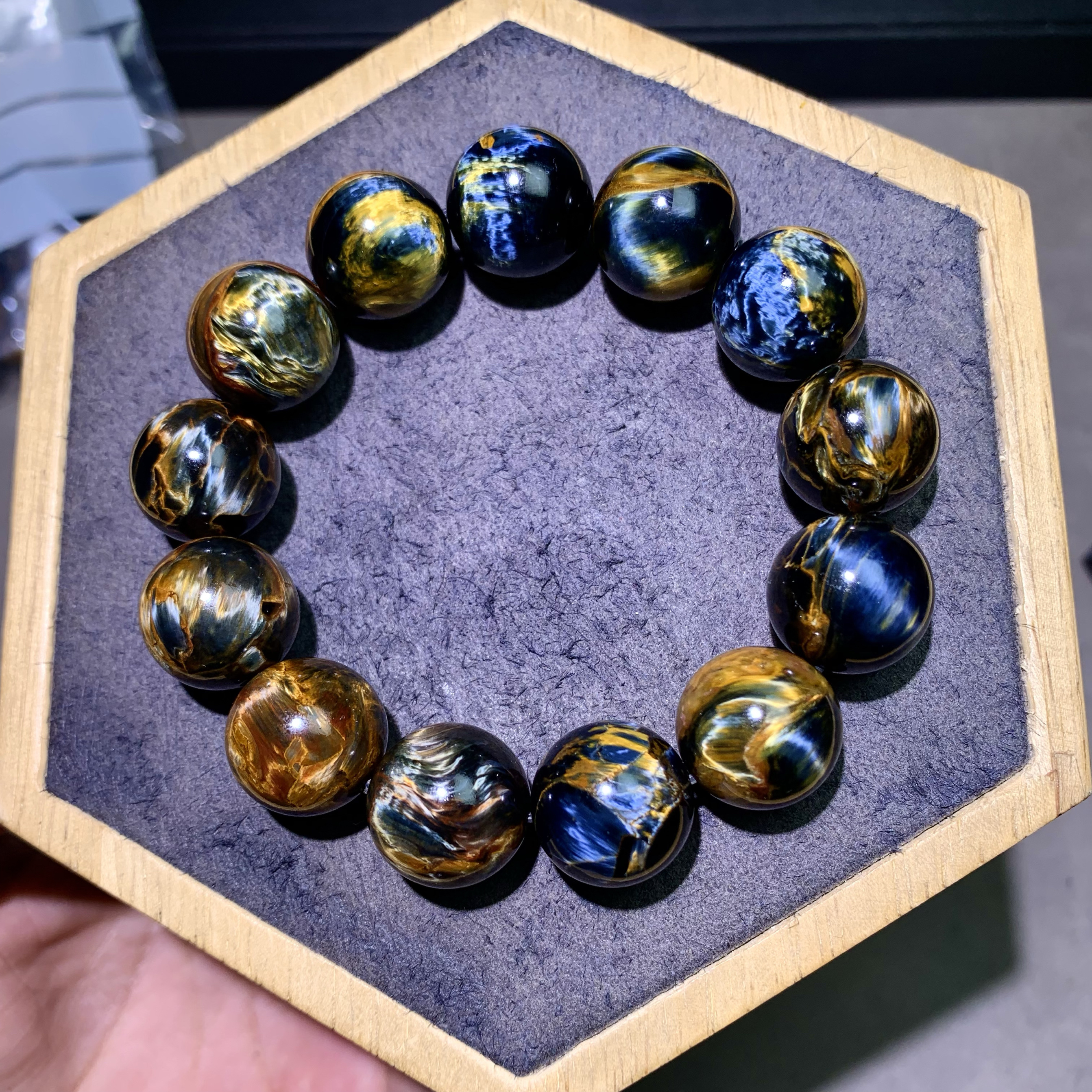 天然彼得石手链猫眼手串男女深蓝色猫眼暴风雨宝石地球纹手链