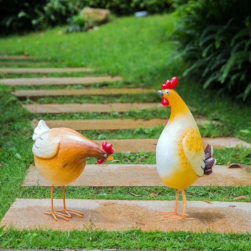 园林庭院摆件卡通彷真公鸡母鸡动物雕塑户外景观摆设创意家居装饰