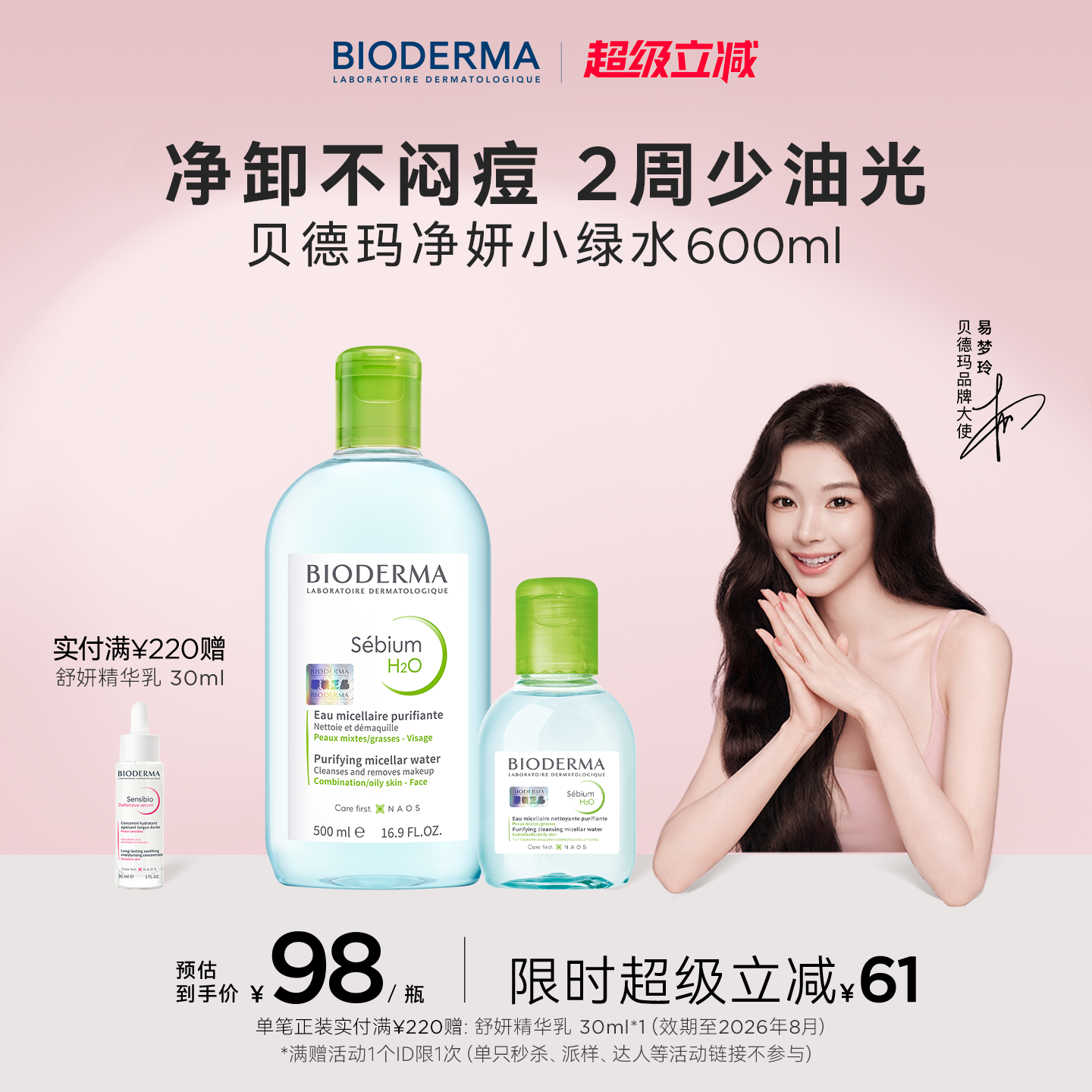 【易梦玲同款】贝德玛小绿水控油卸妆水净澈油皮混油清洁无刺激