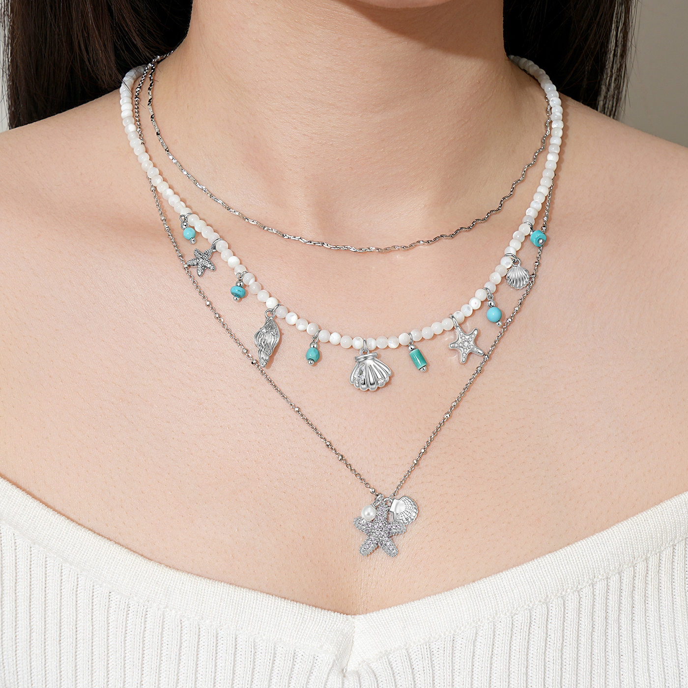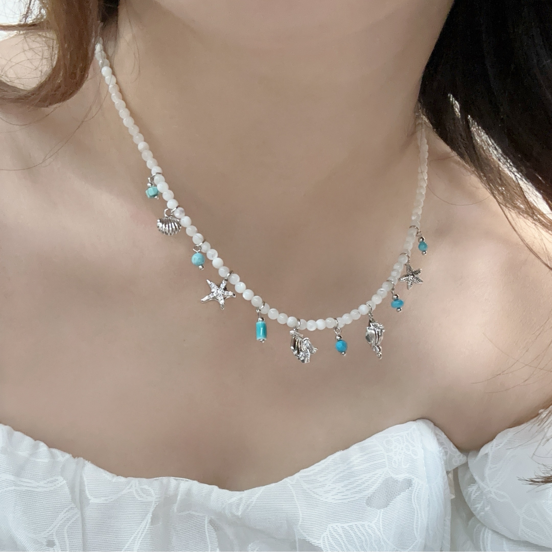 LADECORATION海洋系列蓝松石贝壳项链淡水珍珠耳环