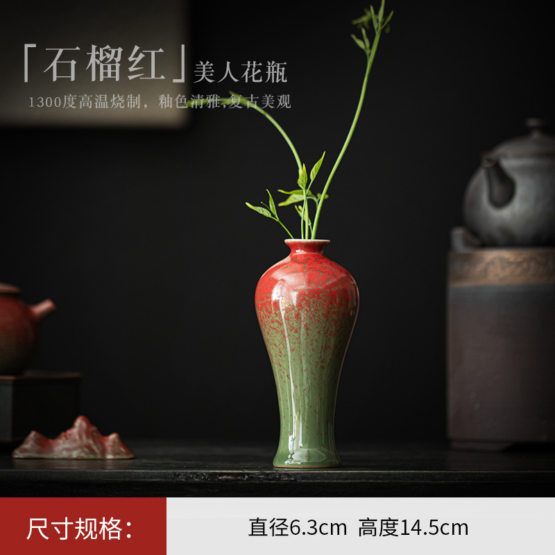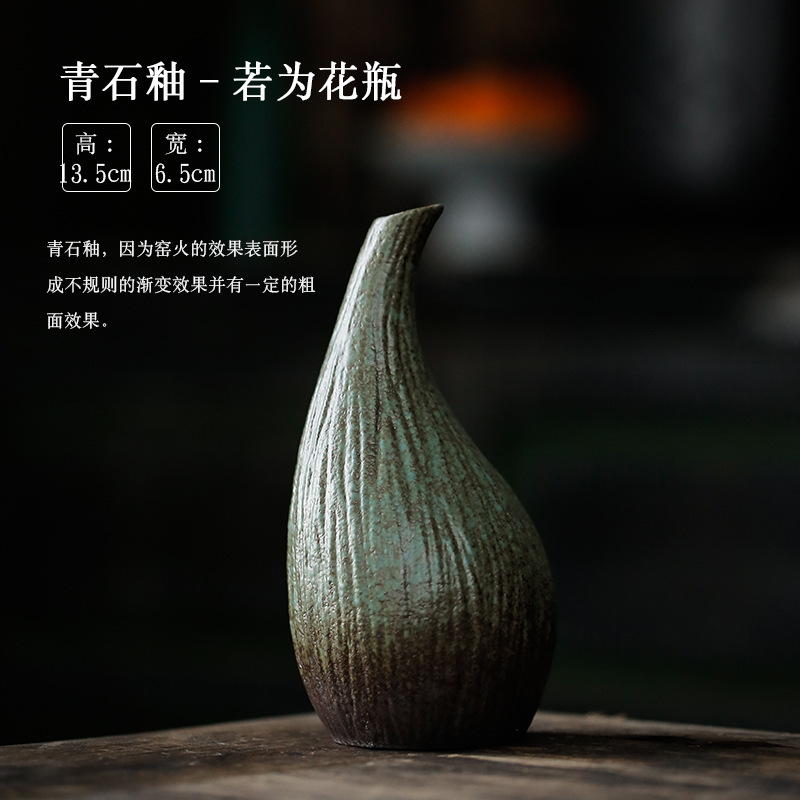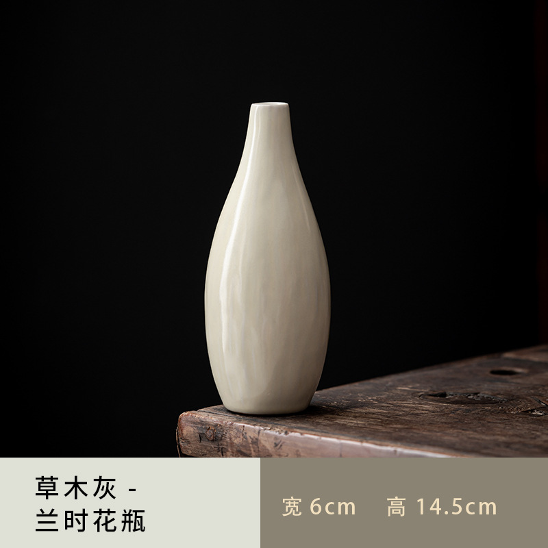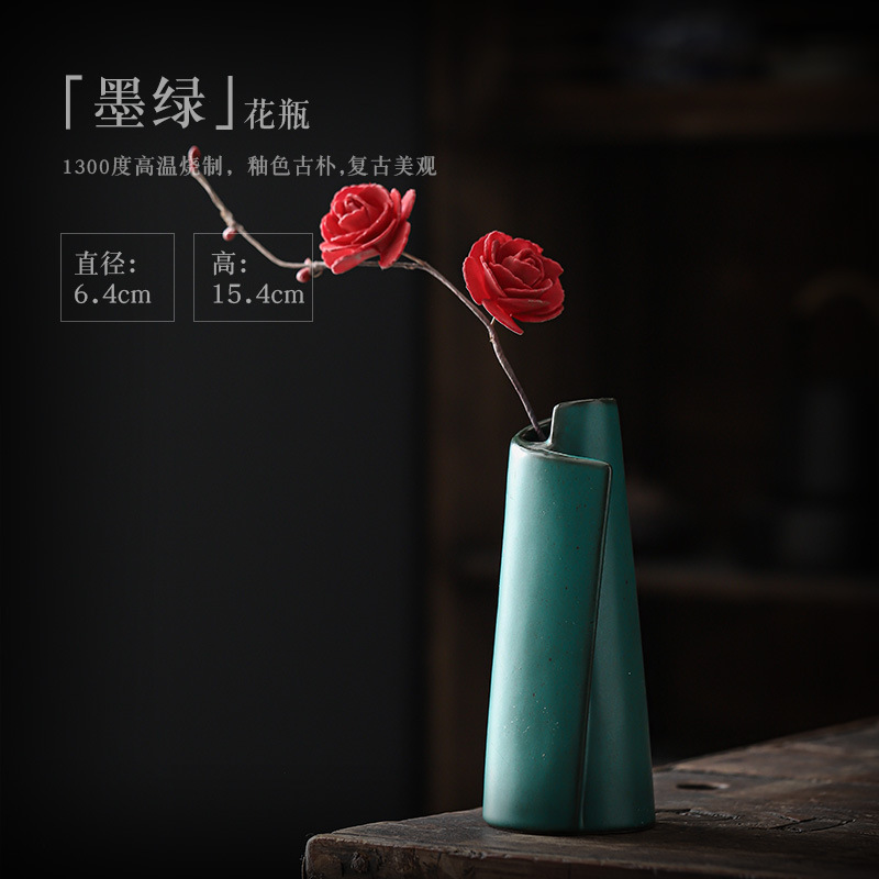 新中式茶室茶桌博古架茶柜摆件禅意茶道配件复古风陶瓷花瓶花器