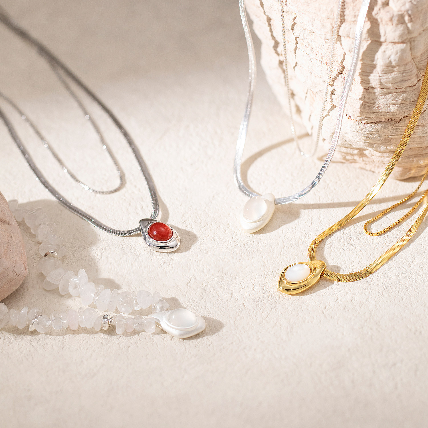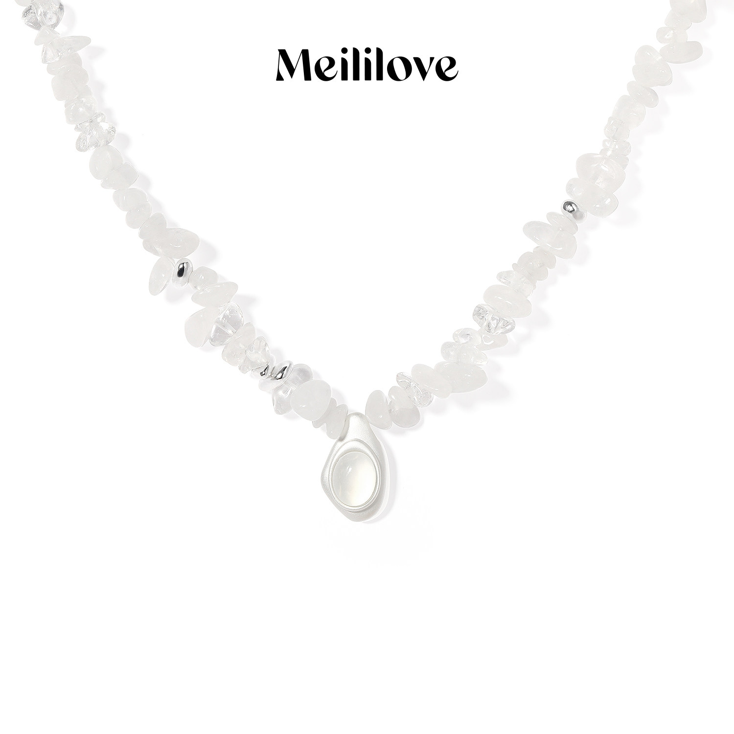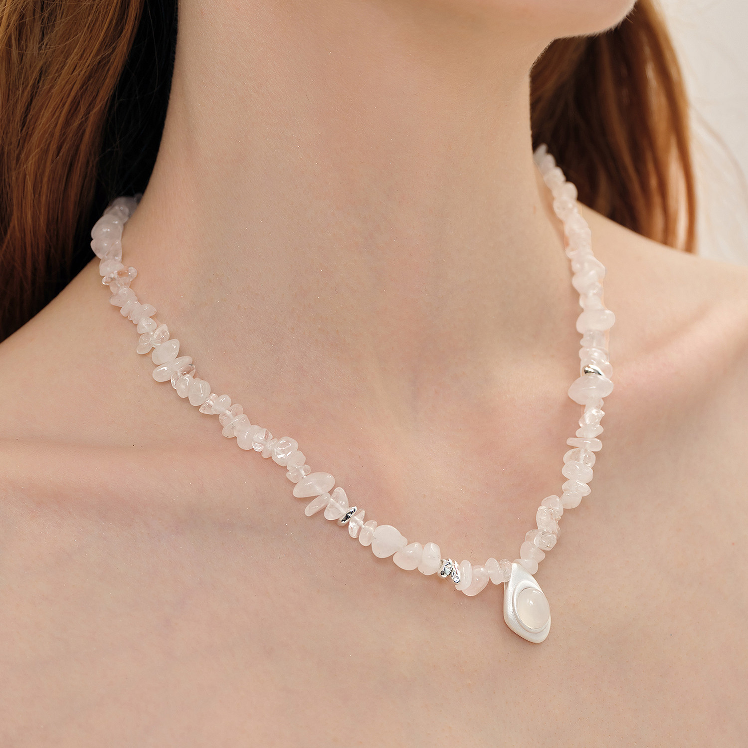 【早春穿搭】莓拉「水生浮想」白色碎石串珠项链玛瑙吊坠项链显白