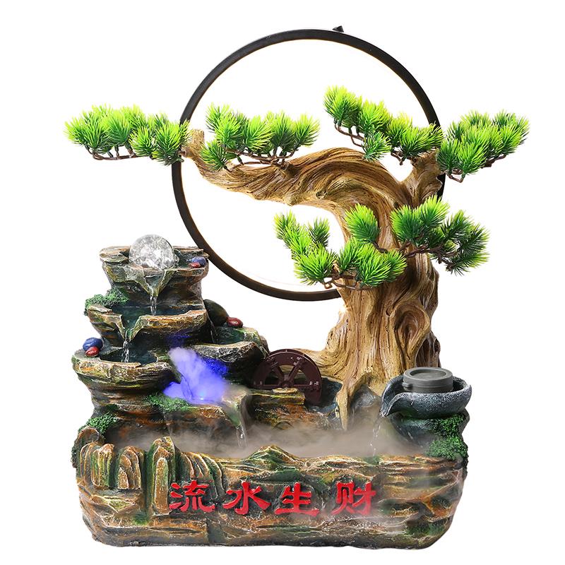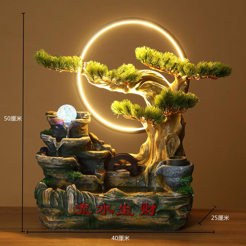 假山流水生财摆件喷泉中式家居桌面摆放装饰树脂创意乔迁开 业礼