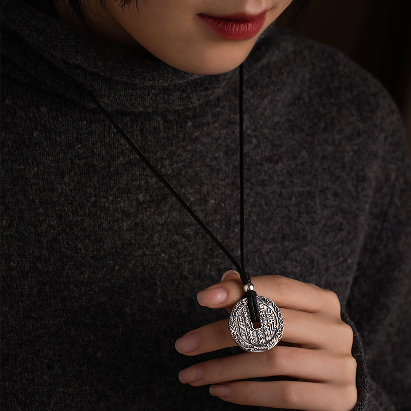 大善堂纯银山鬼花钱吊坠复古平安扣项链挂件男女国潮复古风配饰坠