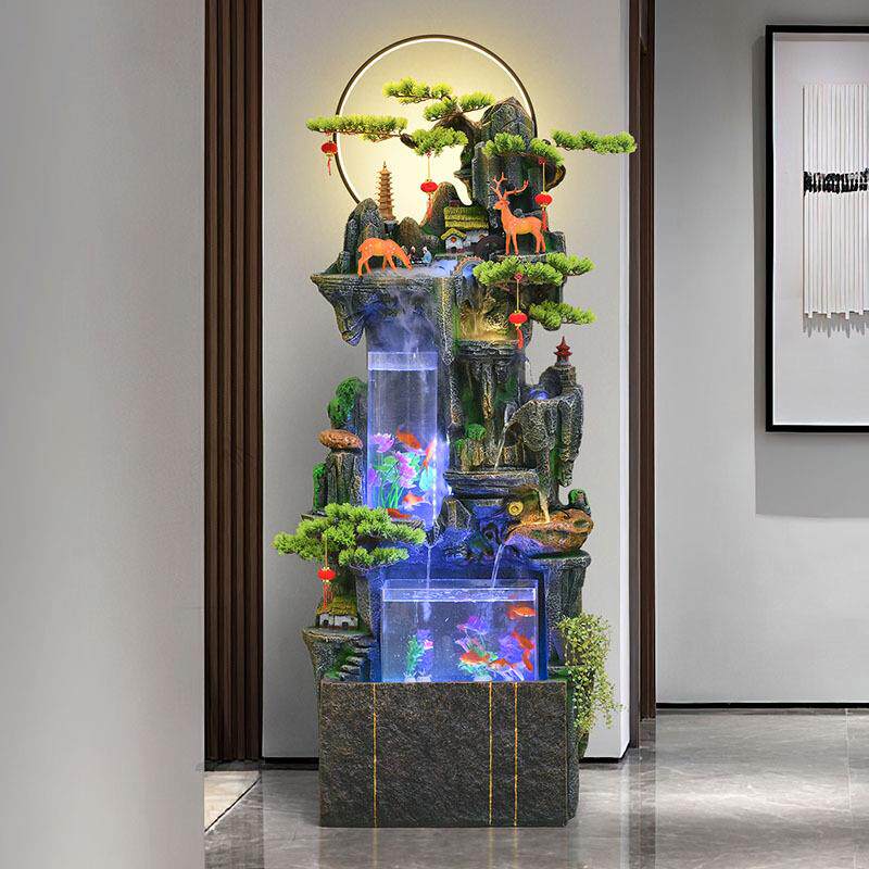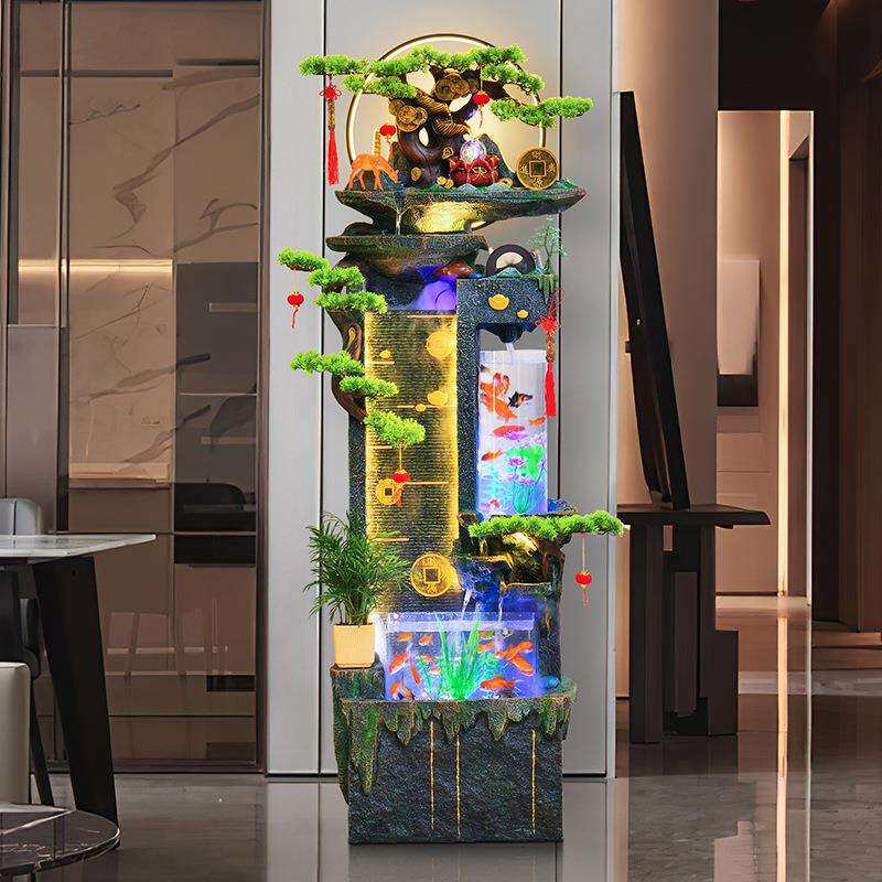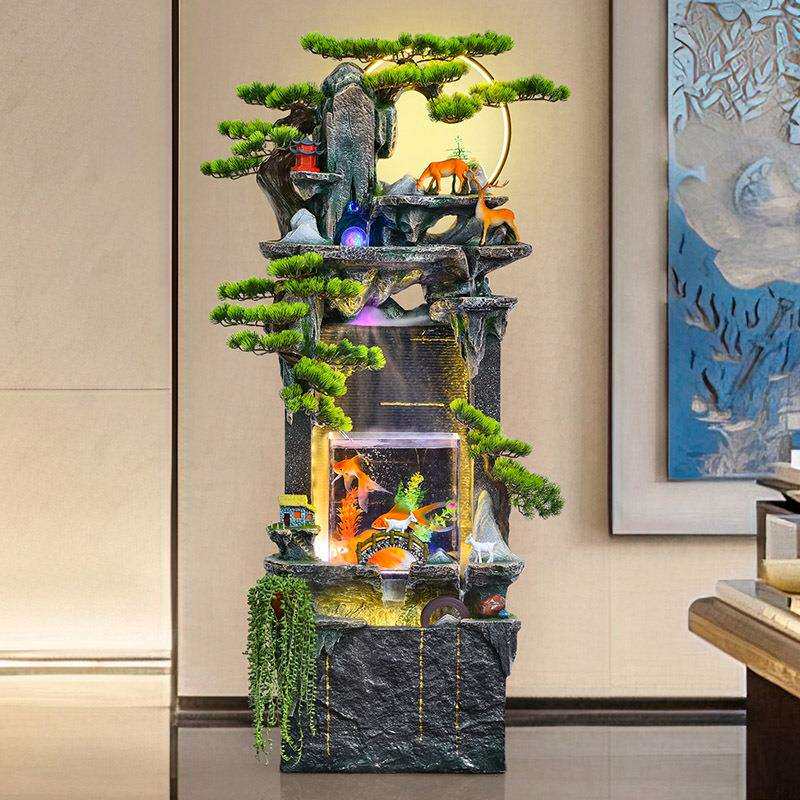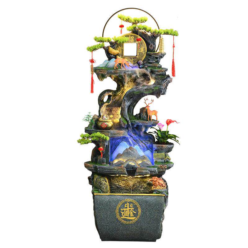 创意中式田园假山流水喷泉加湿器风水轮落地客厅乔迁开业装饰摆件