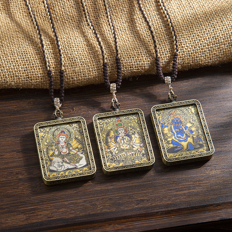藏式唐卡八大守护生肖高端热贡黑金唐卡扎基拉姆本命佛嘎乌盒吊坠