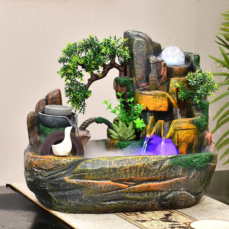 假山流水招财喷泉摆件办公室客厅装饰桌面循环水造景开 业乔迁礼