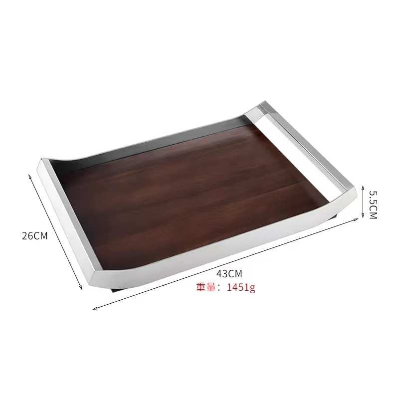 香薰木托盘意家居装饰托盘高端收纳不锈钢放盘胡桃圆式摆简约托盘
