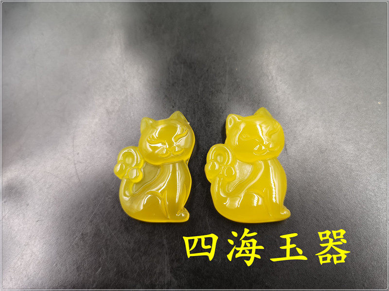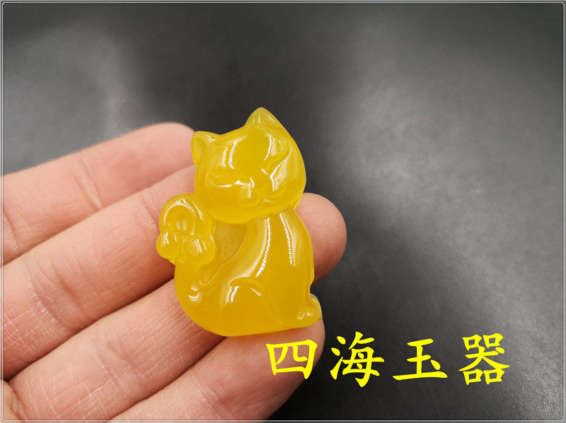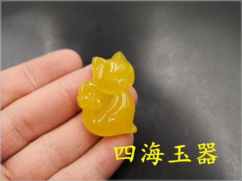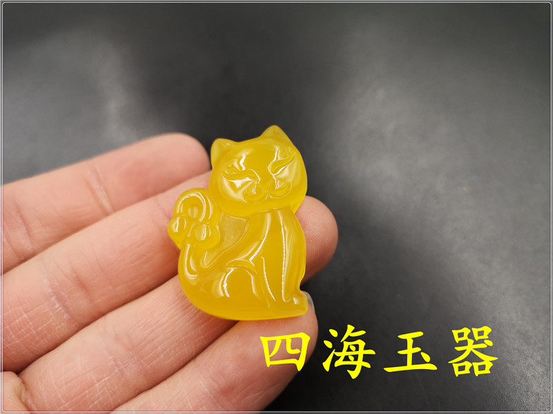 四海玉器 天然正品黄玛瑙小花猫吊坠 黄玉髓猫咪吊坠 挂件 特价