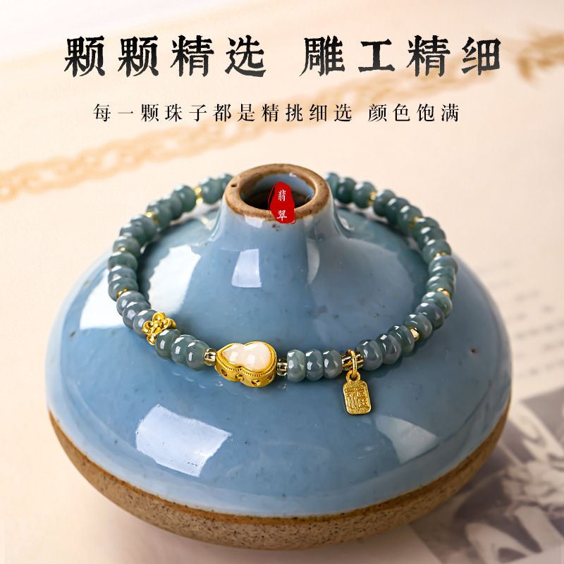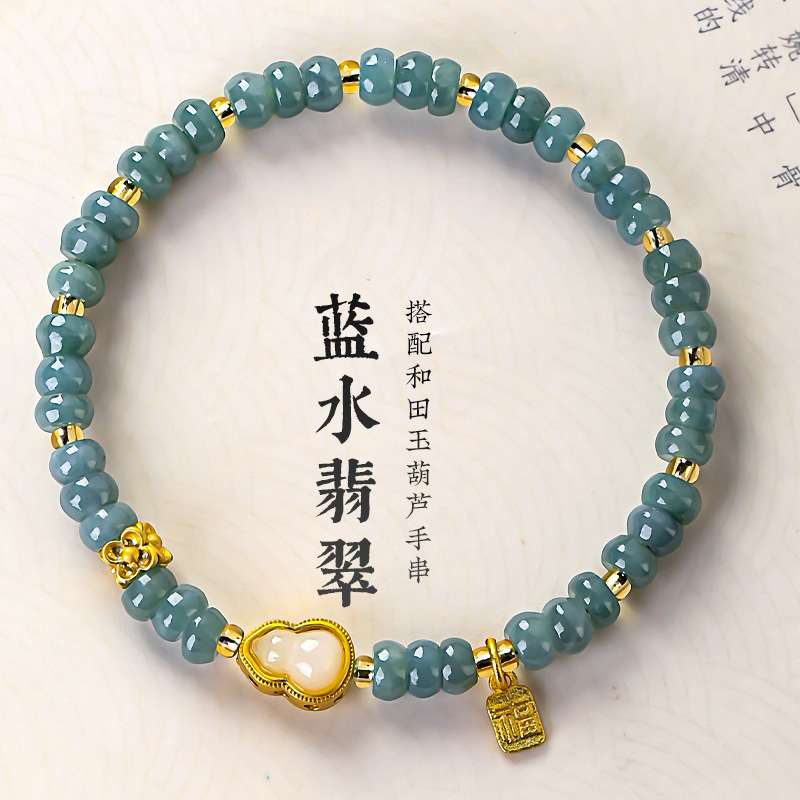 新中式手链本命年旗袍汉服中国风手饰国潮蓝水翡翠算盘珠葫芦手串