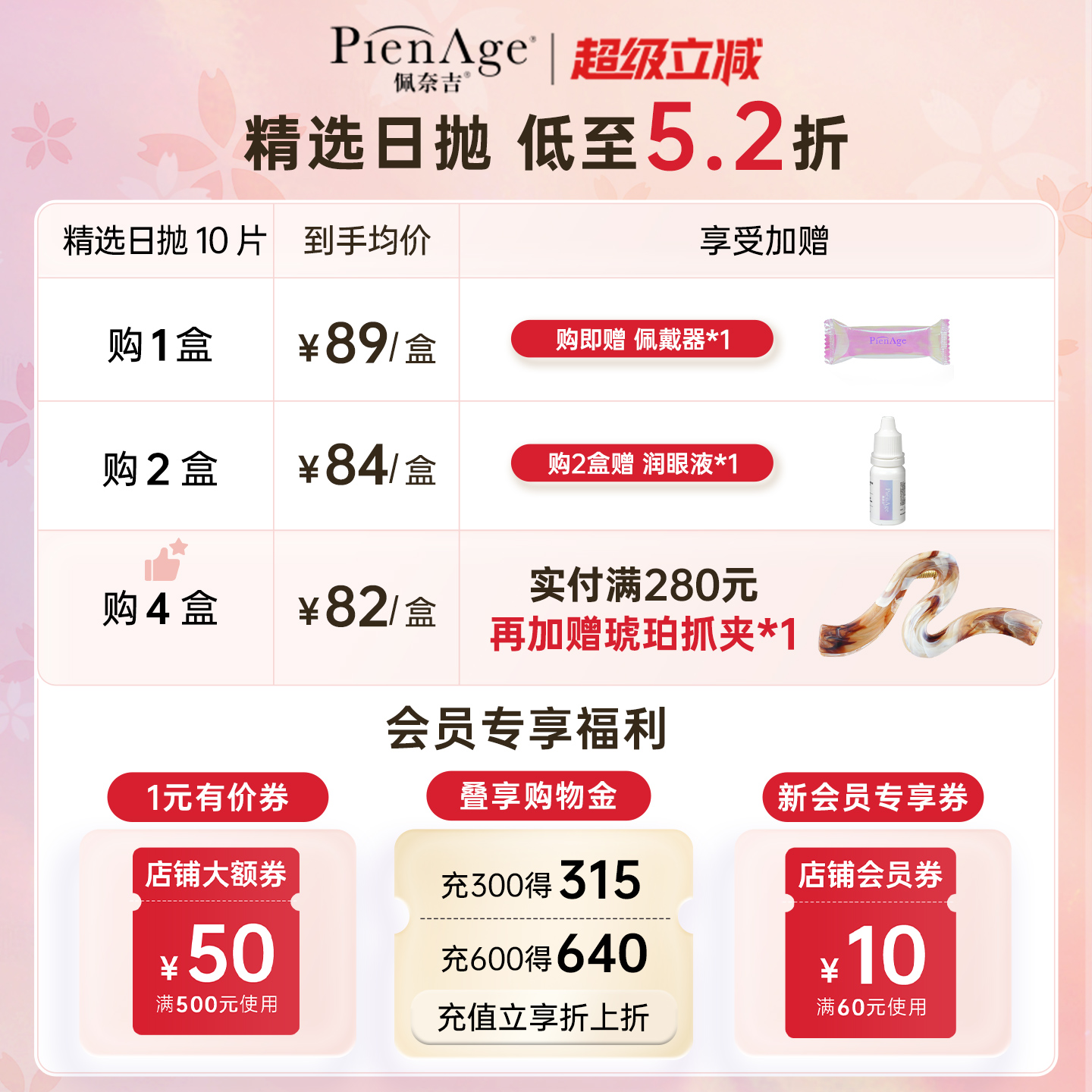 【新品上市】PienAge佩奈吉美瞳日抛10片水晶茶棕黑月光隐形眼镜