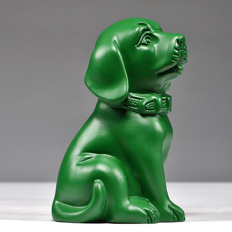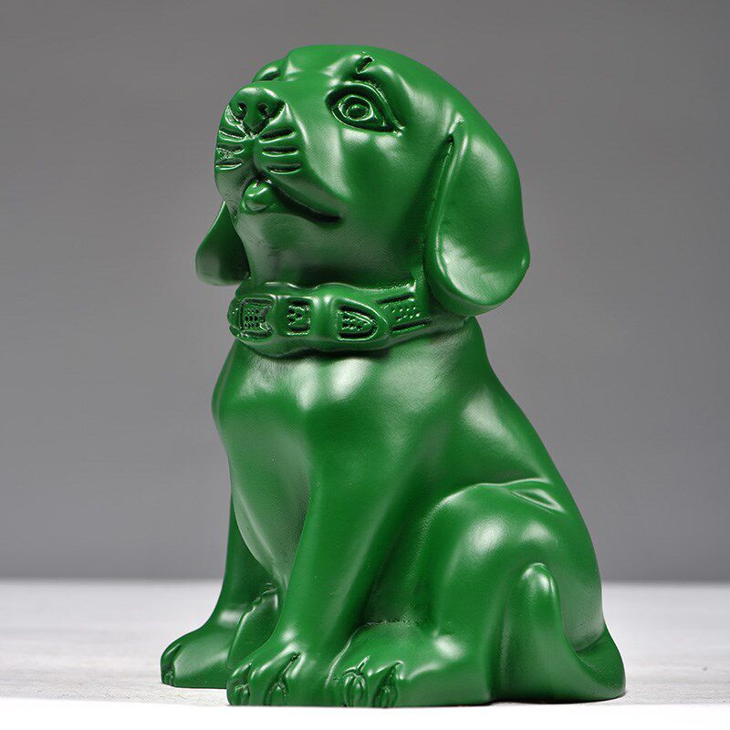 绿色木雕刻狗摆件生肖狗动物狗实木质家居客厅办公装饰送礼工艺品