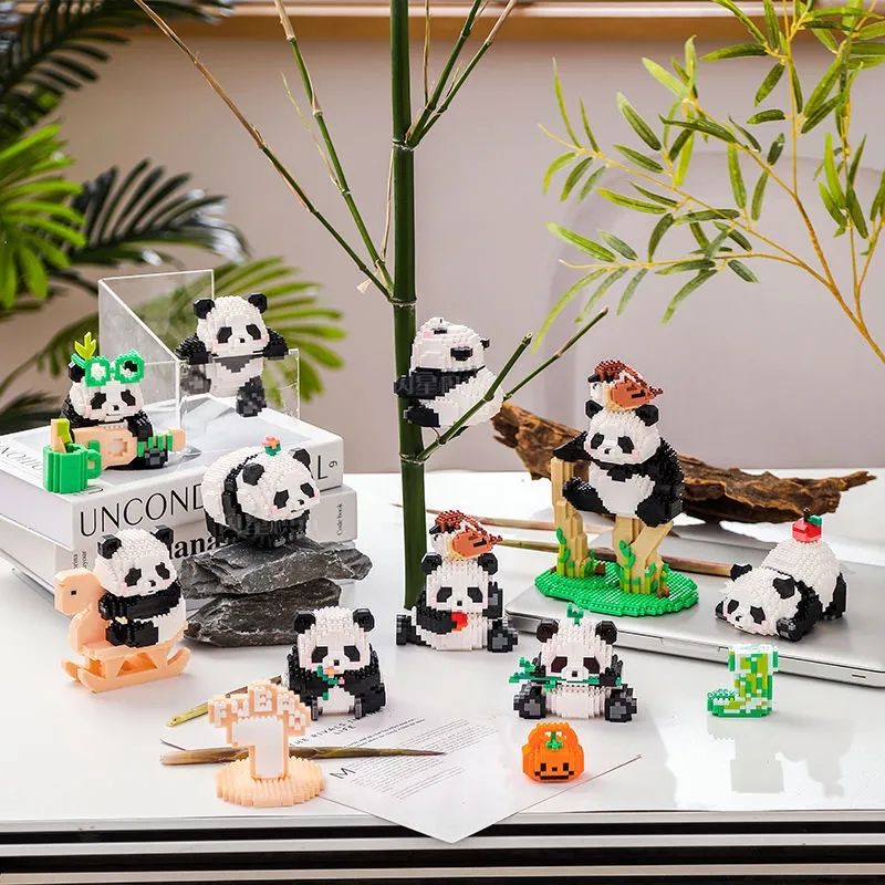 兼容乐高熊猫萌兰花花福宝果赖拼装积木微钻小颗粒男女孩摆件玩具