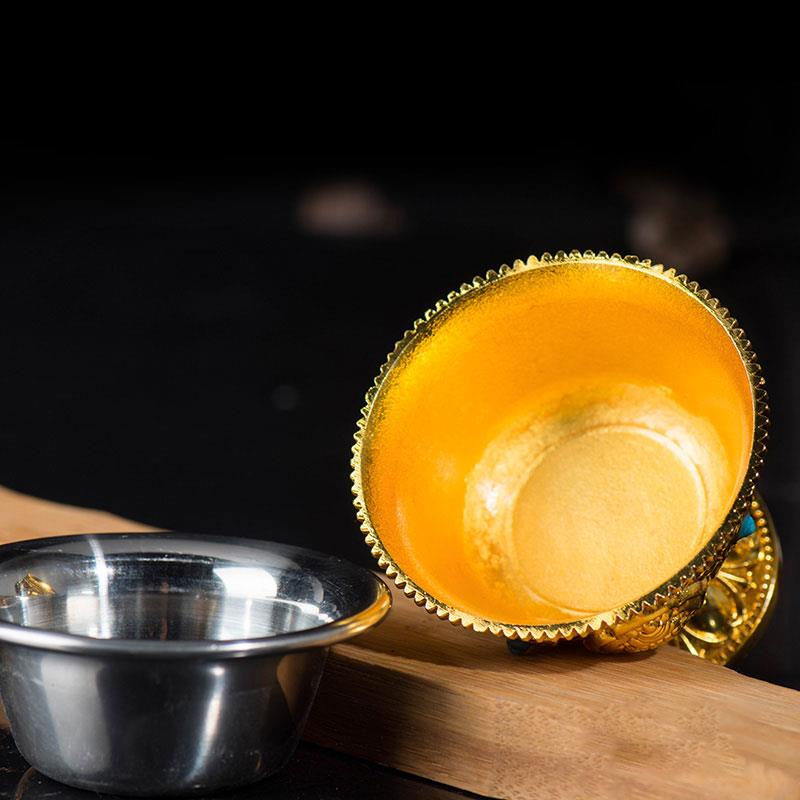 佛前用品 七供圣水杯用品杯 不锈钢内胆水碗铜鎏金八吉祥高脚供杯