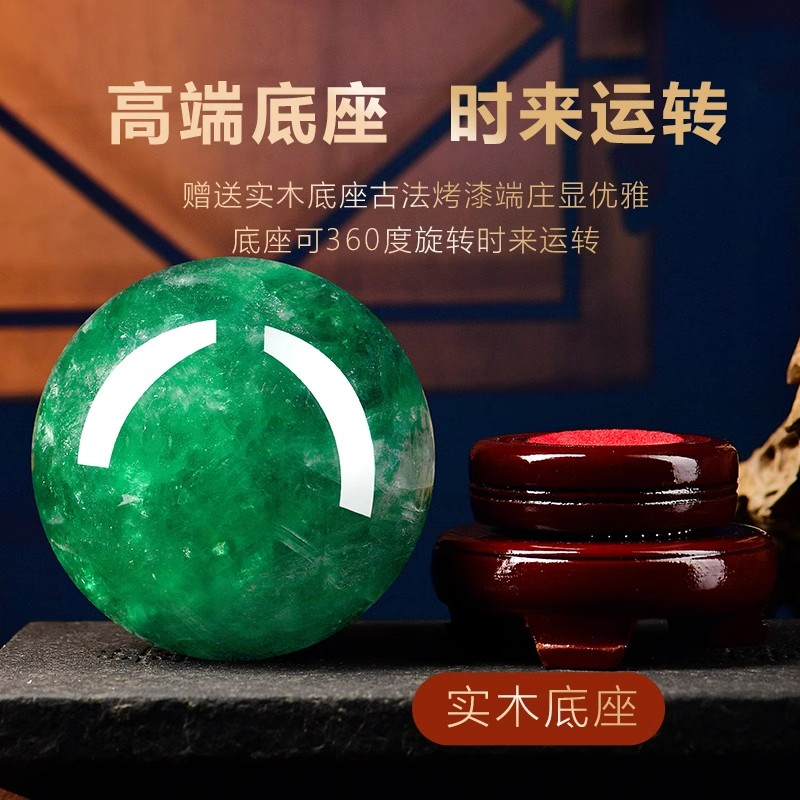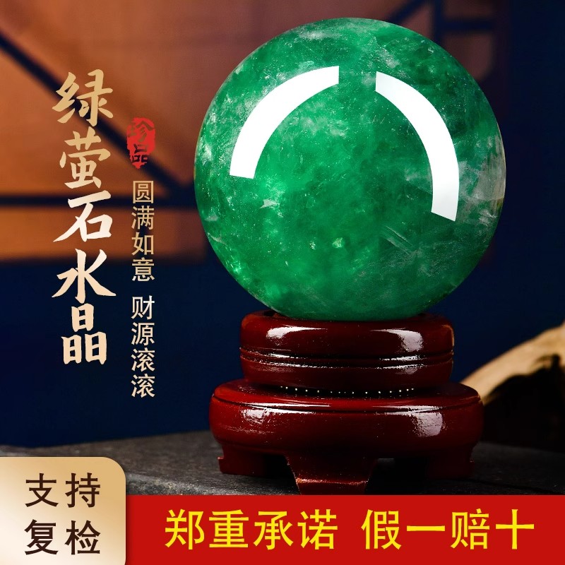正品天然绿色水晶球摆件原矿萤石磨制玄关客厅公司办公室家居属木