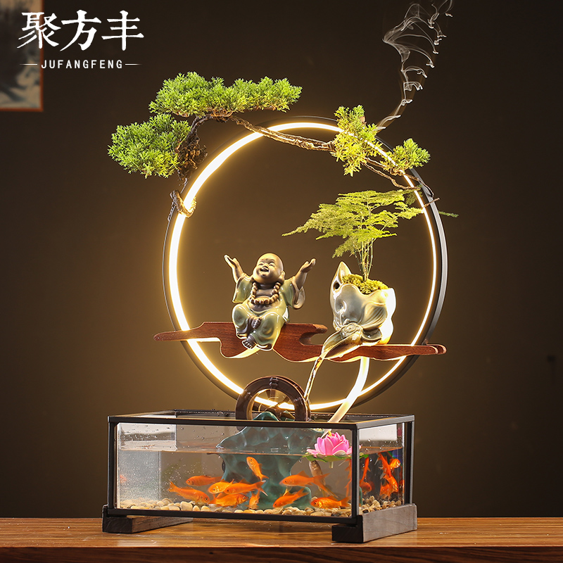 流水摆件循环流水喷泉鱼缸流水生财招财客厅办公桌面乔迁开业礼品