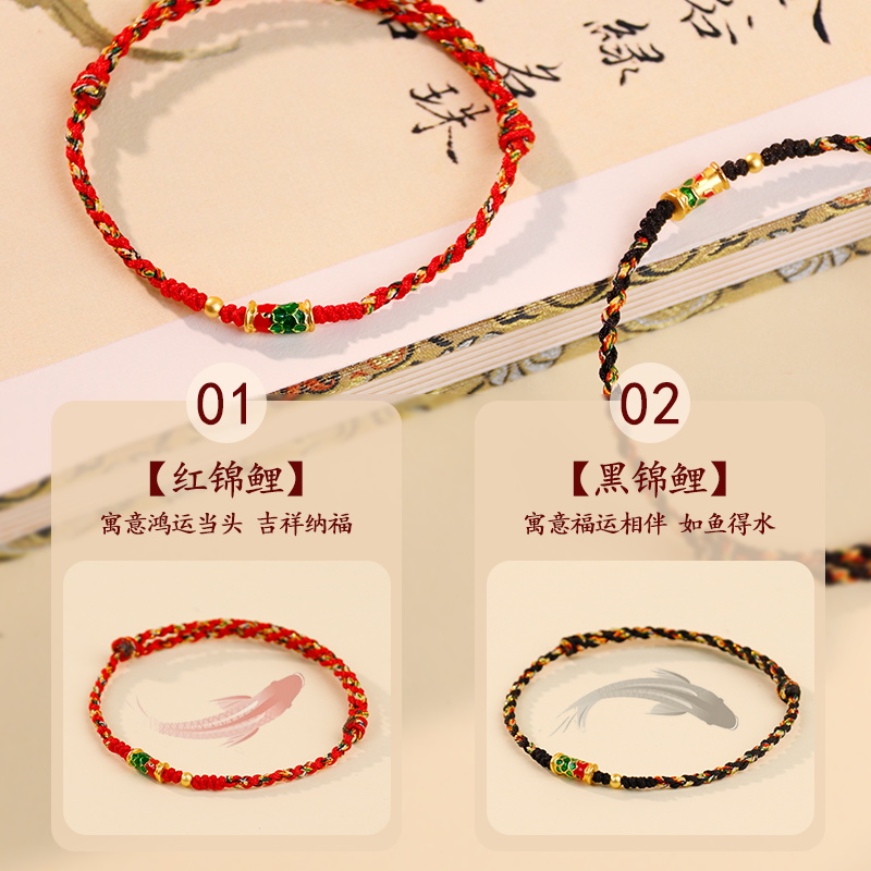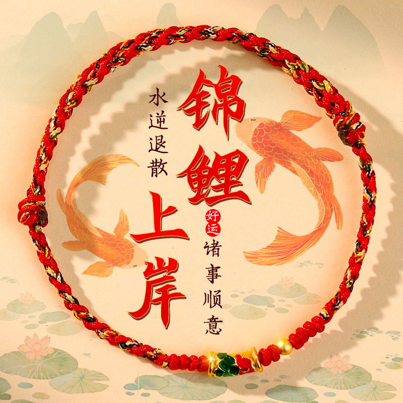 极速五台五彩h绳好运锦鲤手链女生红色上岸转运手绳手工编织绳男