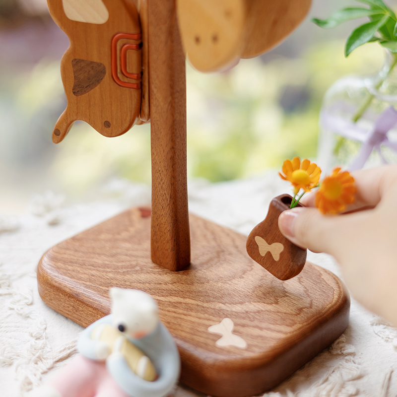 蝴蝶翩翩/创木工坊创意实木家居装饰摆件植物工艺品礼物