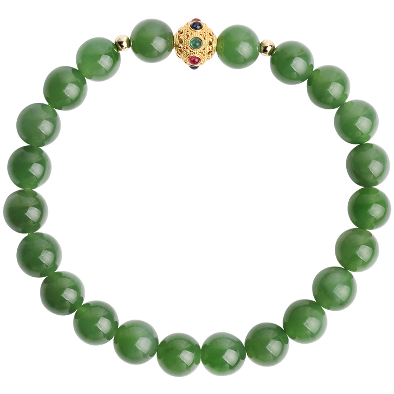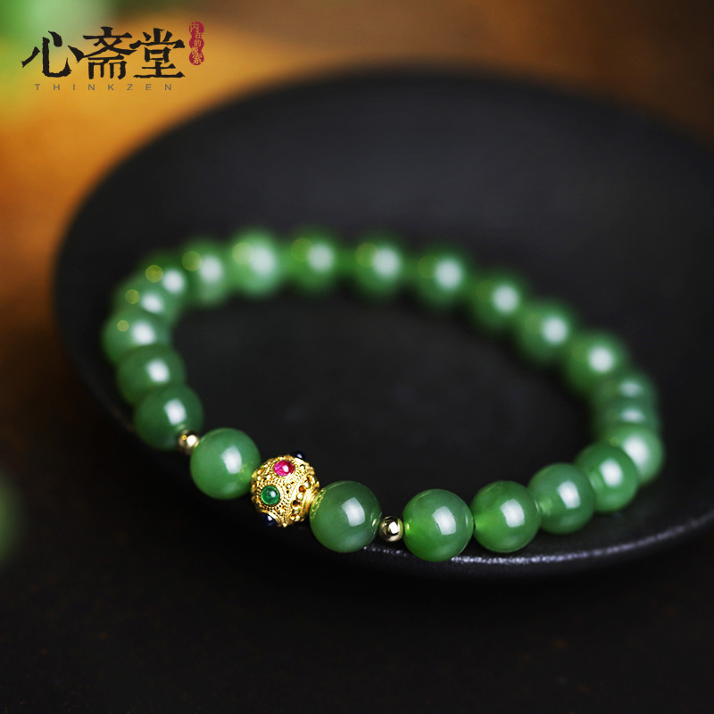 心斋堂【冰翠】天然冰底阳绿碧玉手串和田玉K金夏季手链男女礼物