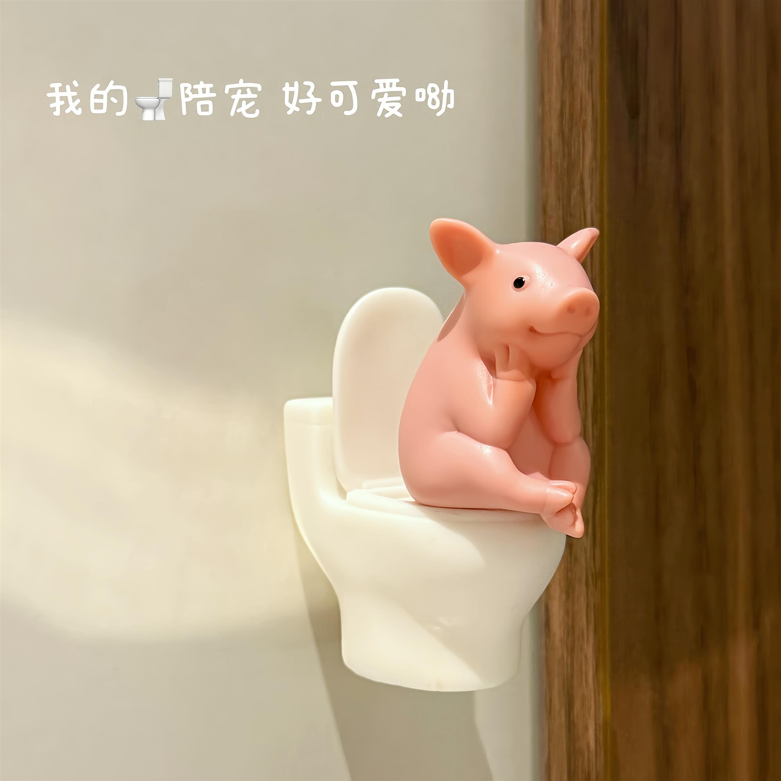 厕所搭子!马桶猪摆件装饰卫生间家居创意桌面趣味仿真可爱小摆件