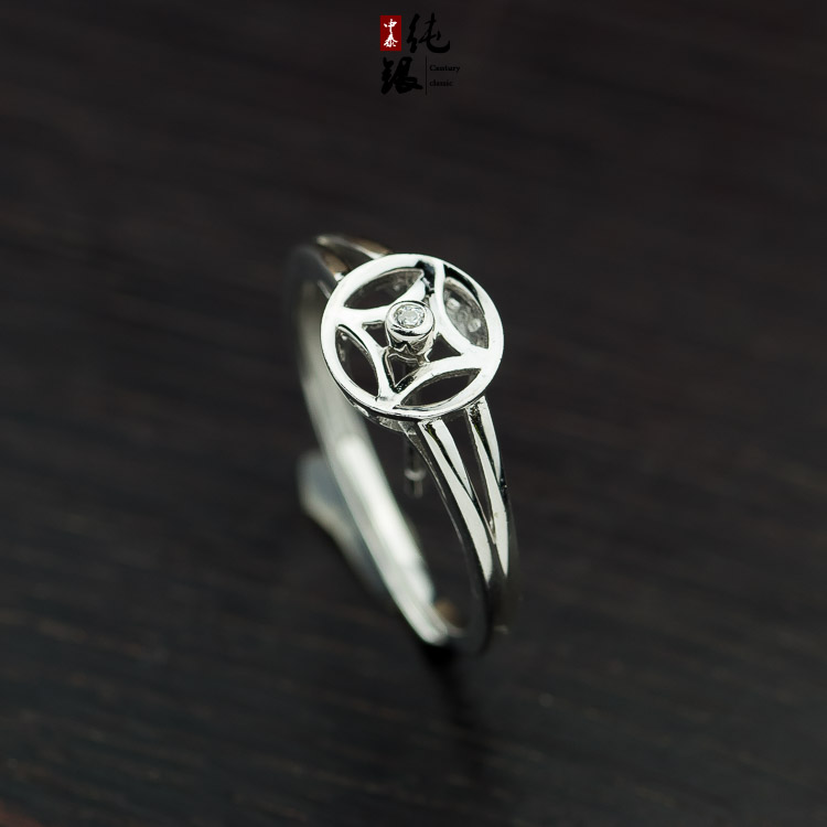 s925纯银算盘珠隔珠小平安扣戒指托空托DIY戒托银饰配件活口男女