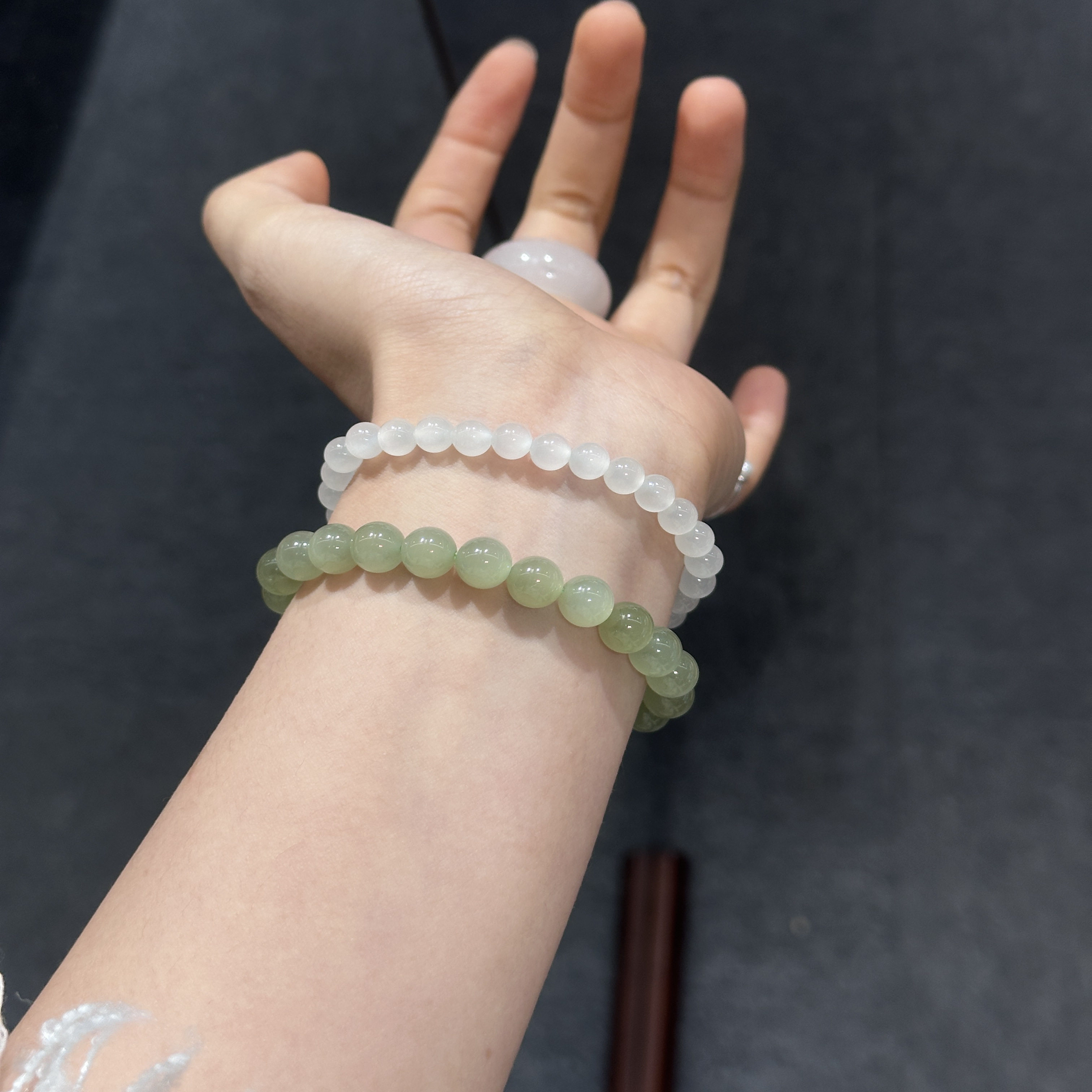 天然和田玉6mm冰白圆珠单圈手串 显清冷高级轻贵感 货号13614
