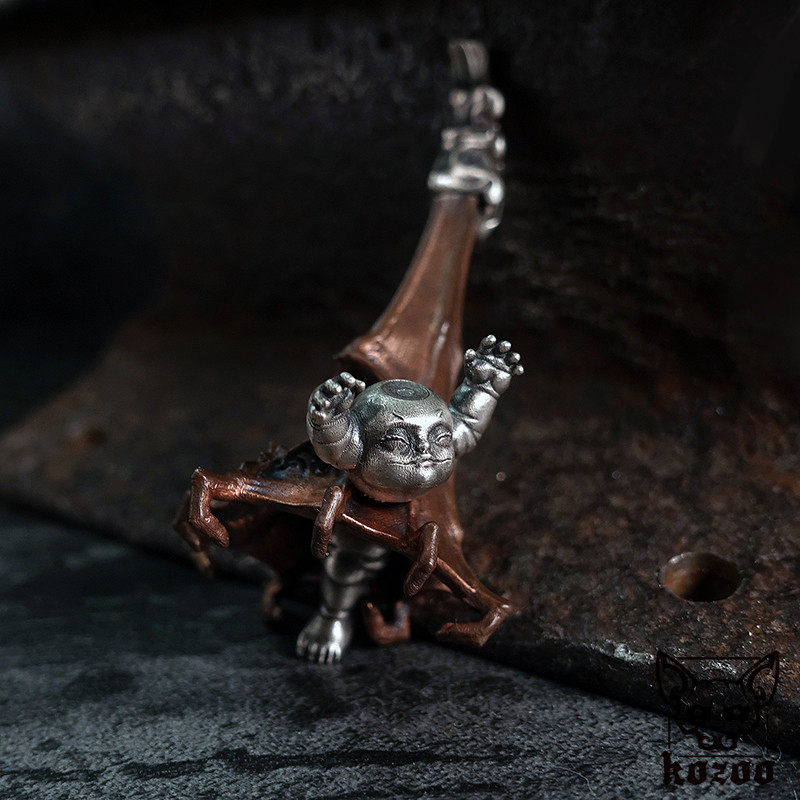 kozoo原创设计雨降小僧挂坠新款项链自在置物国潮银饰925纯银可动