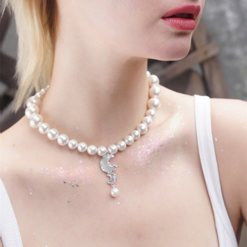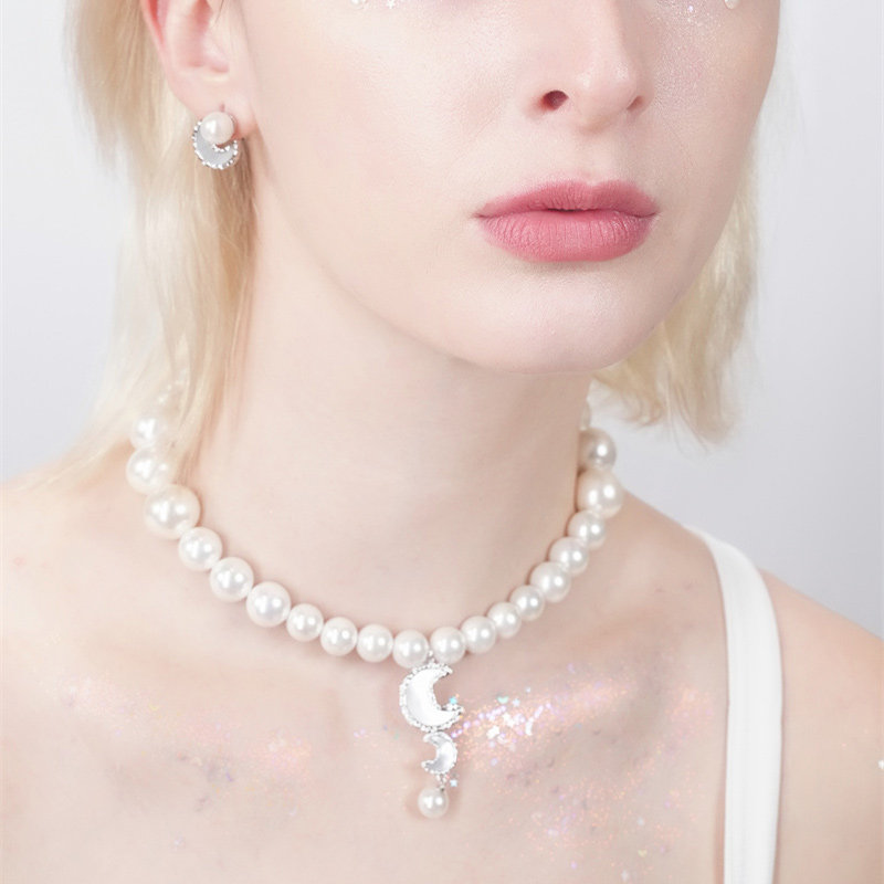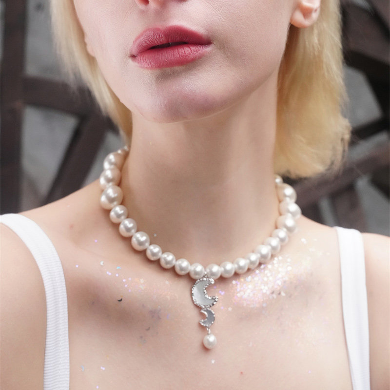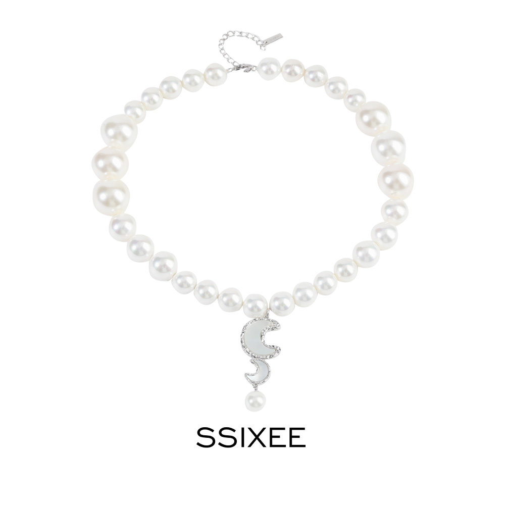 【蔡文静同款】SSIXEE 金星系列 双月亮珍珠吊坠星球肌理珍珠项链