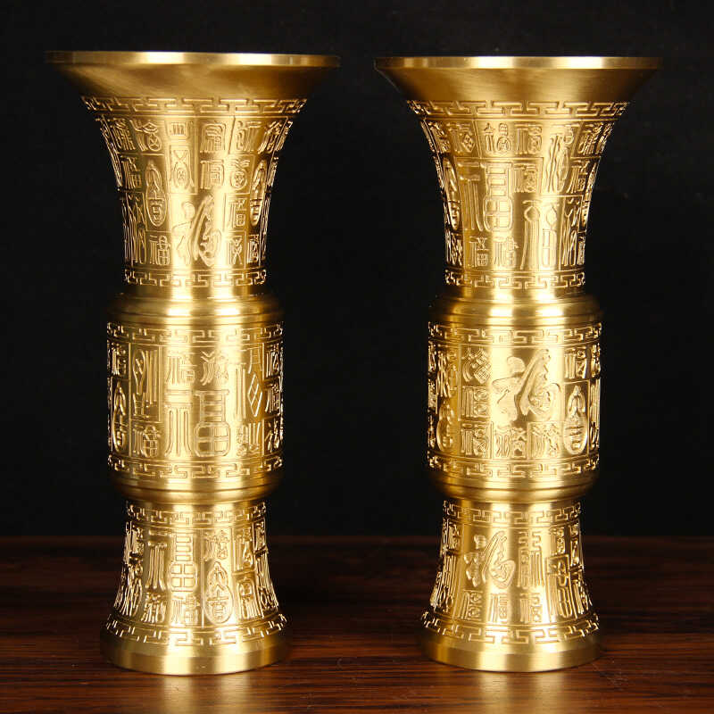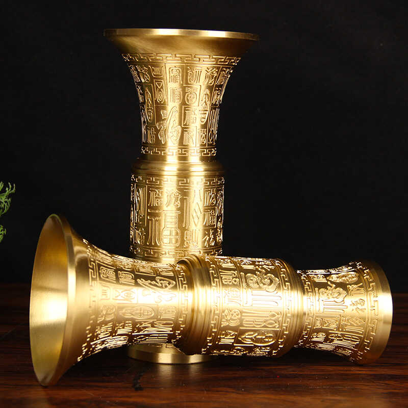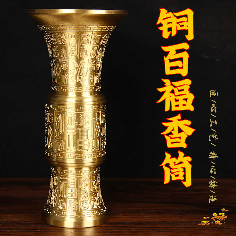 纯黄铜百福香桶摆件大号仿古花瓶工艺品家居办公室客厅装饰摆设