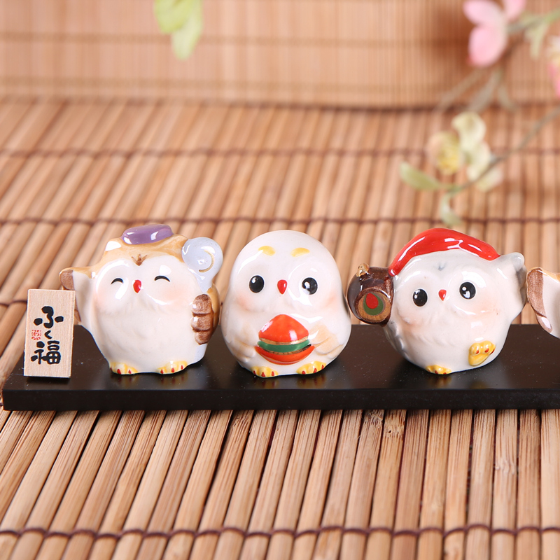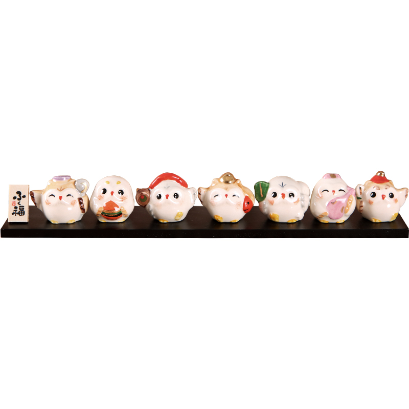 日本药师窑猫头鹰摆件七福神招财猫陶瓷车载生日结婚开业进口礼品
