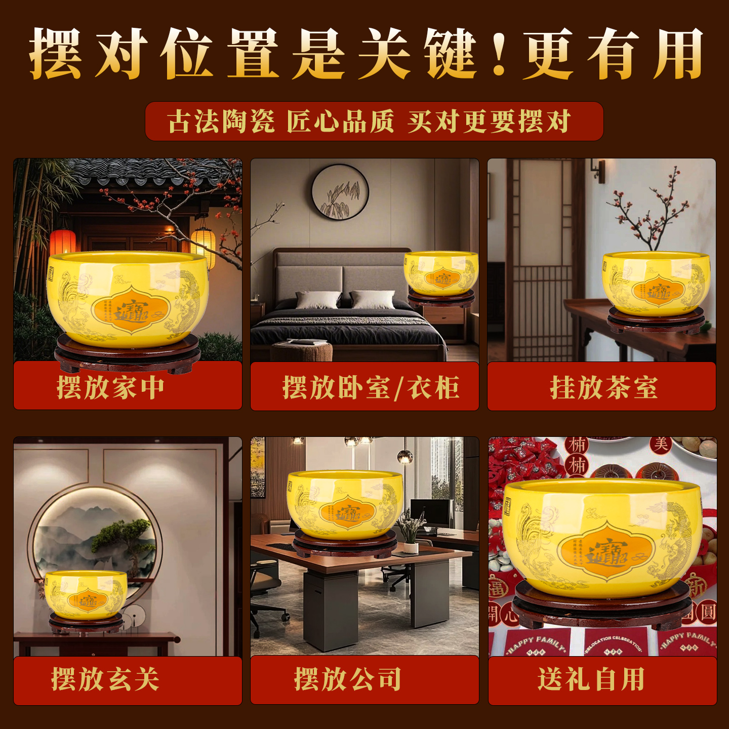 八方来财高档聚宝盆招财聚财摆件黄底景德镇陶瓷办公桌生财装饰品