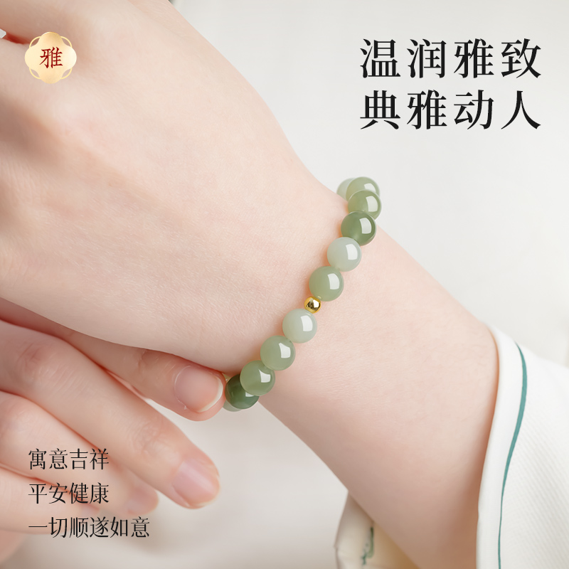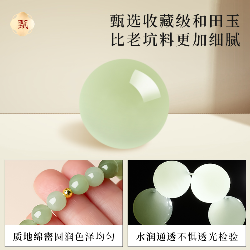 和田玉多宝素圈手链女官方正品天然玉石珠子散珠手串小众手链礼物