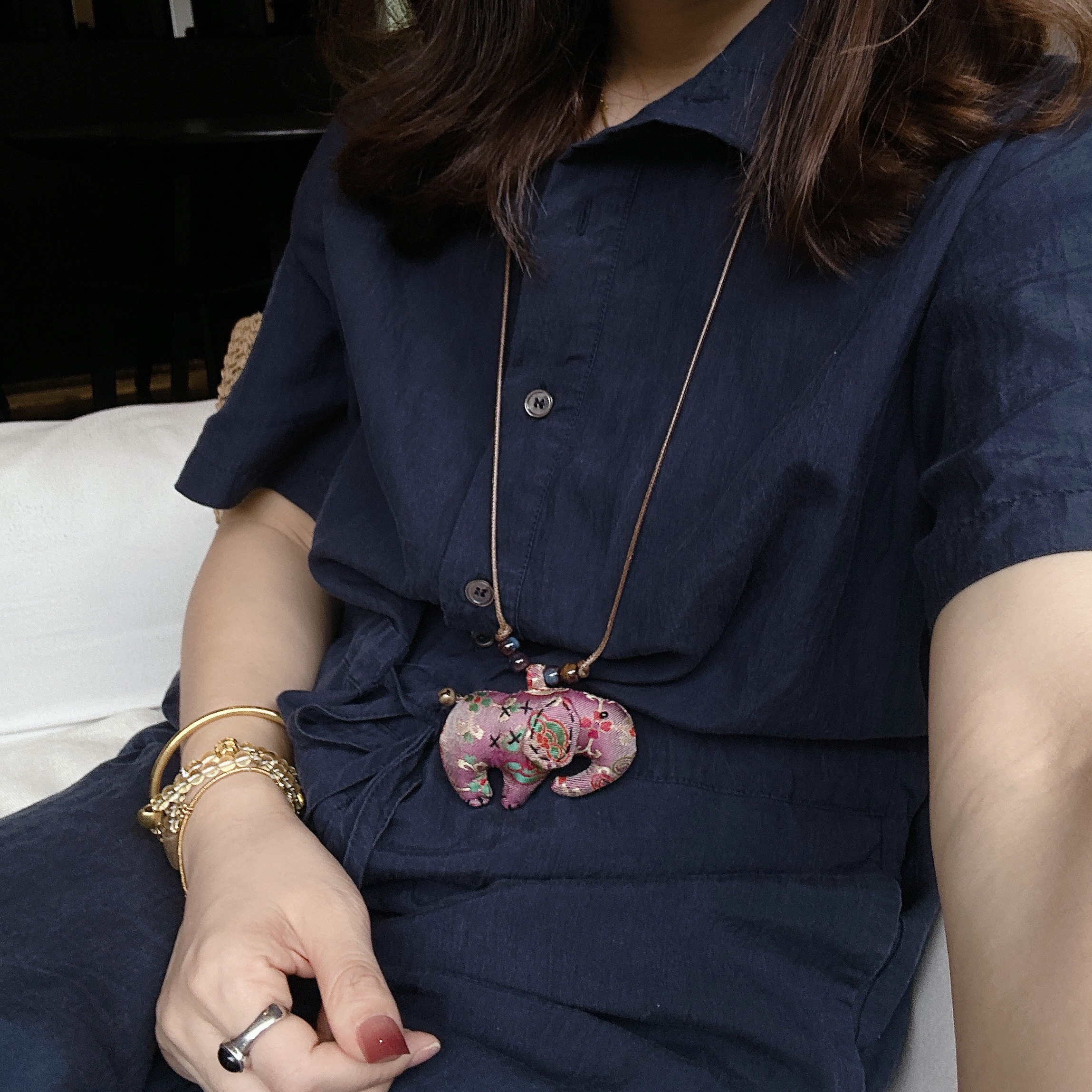 新款国潮真丝香云纱马上有钱新中式非遗宋锦手工配饰小挂件项链