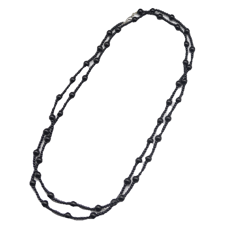 复古打结黑色珍珠项链女时尚长款拼接大小圆珠毛衣链多层气质配饰