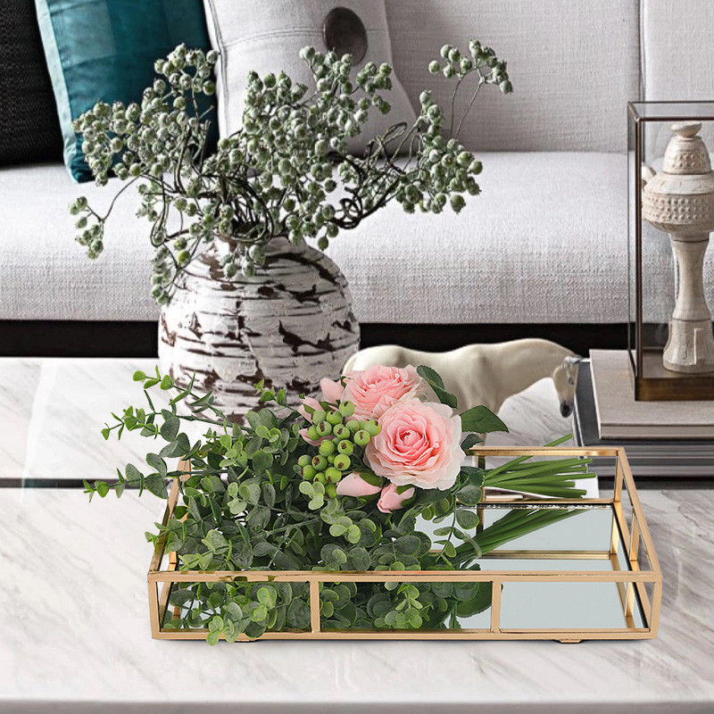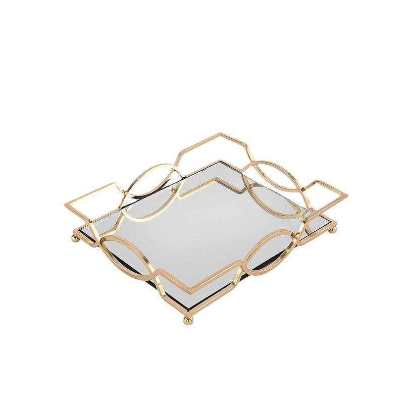 热销客厅托盘四方花边家居摆件电镀拉丝家居装饰品金属摆件
