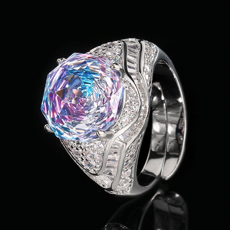 新款铜镀银饰品幻彩色仿彩宝镶钻戒指玫瑰切满钻开口指环女款戒子