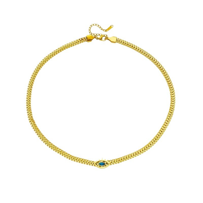 18a欧美复古设计感个性镂空吊坠蓝色眼睛钛钢粗链条项链气质锁骨