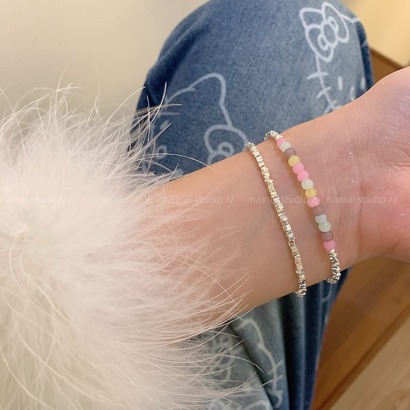 彩色串珠手链~极细碎银子手饰串珠小众ins风精致高级感轻奢手串女