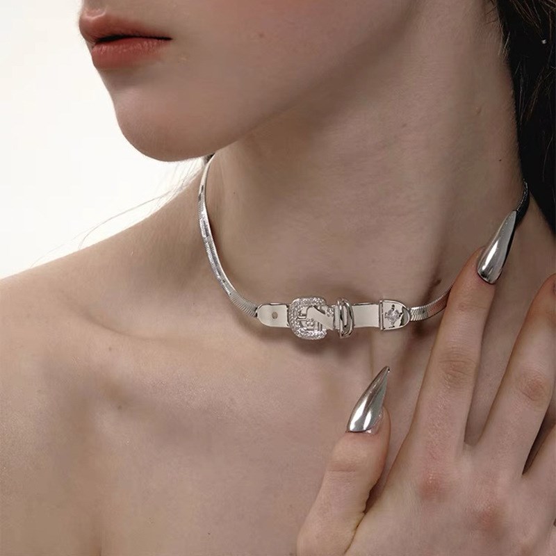小众设计微镶钻皮带扣颈链女高级感气H质银色蛇骨个性轻奢项链项