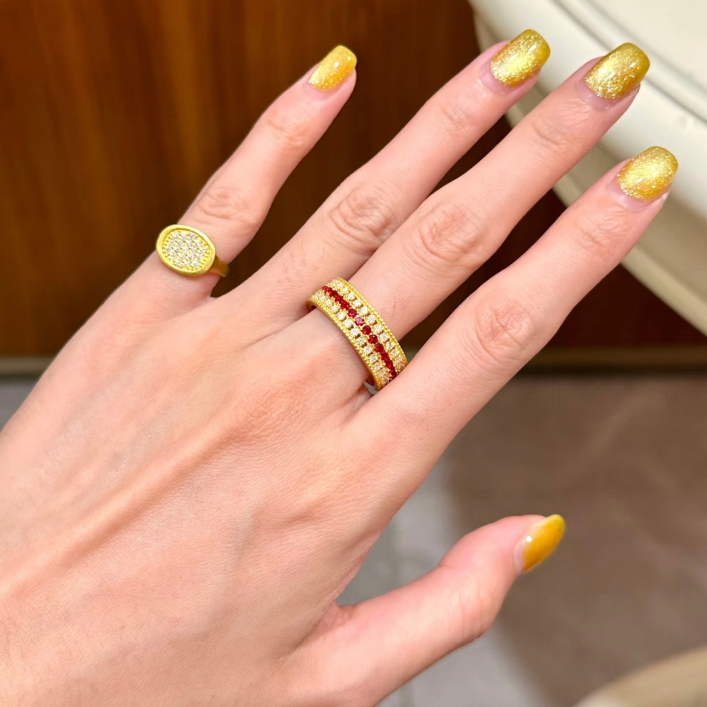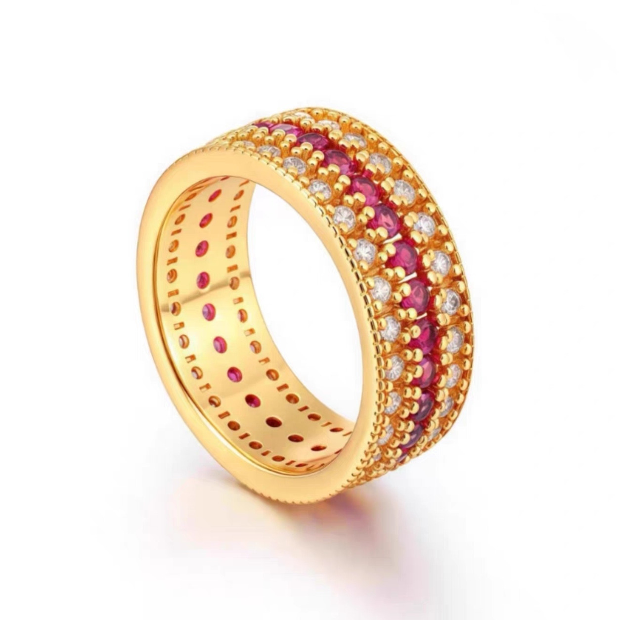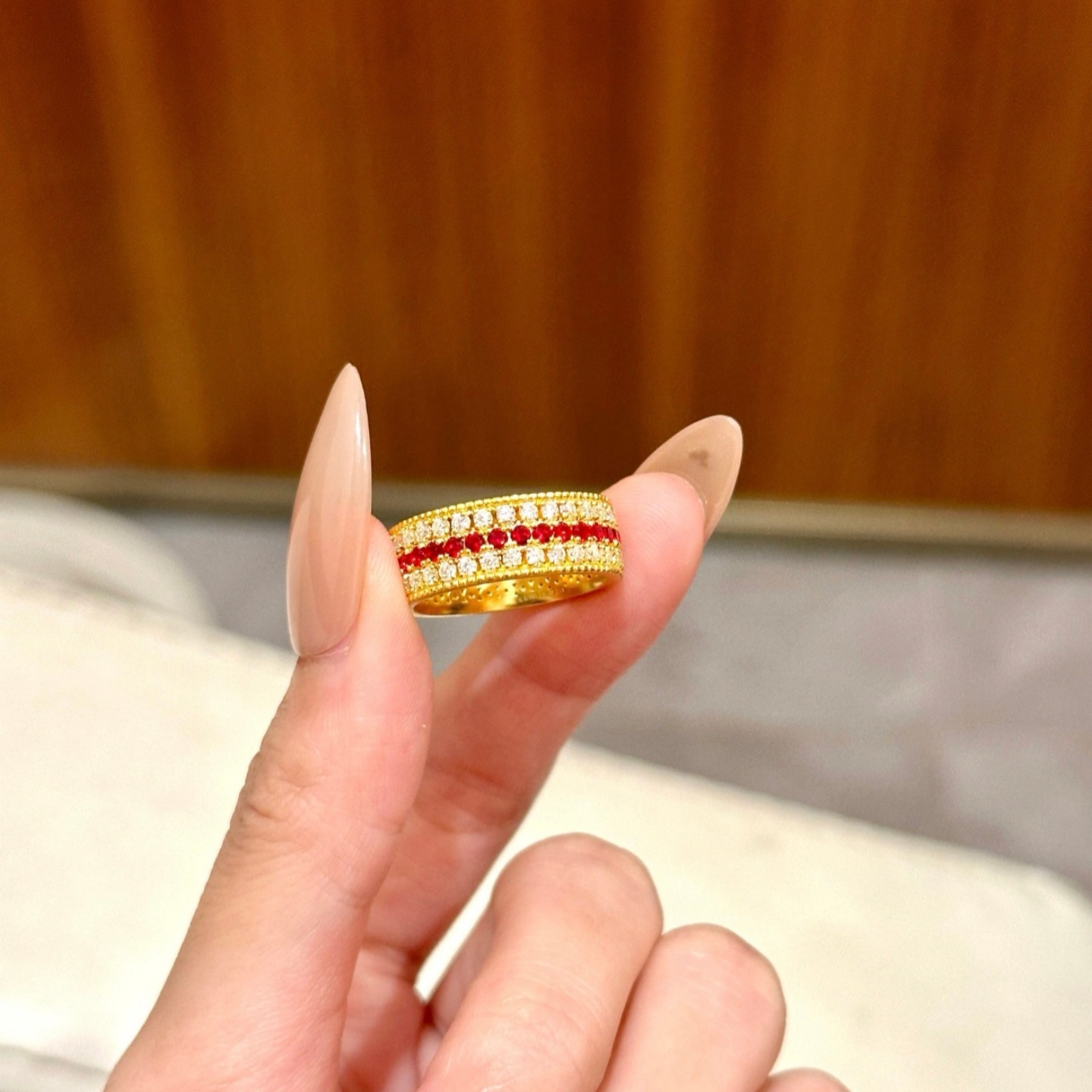 水贝黄金金包银红宝石戒指女款三排满钻轻奢指环送女友情人节礼物