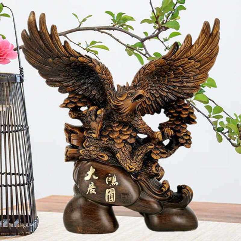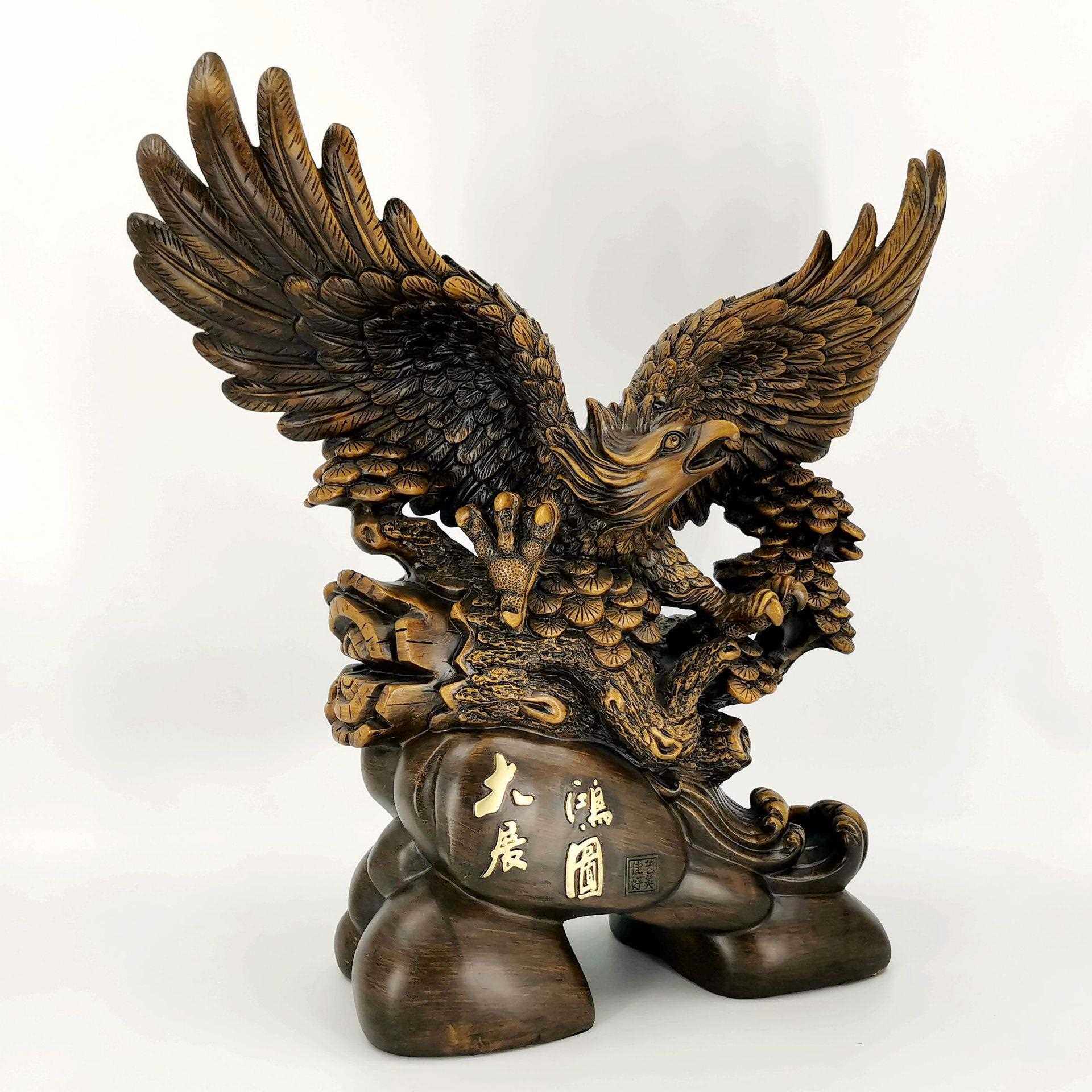 新款直销大展宏图老鹰摆件木雕办公室老板桌家居装饰摆设店铺公司