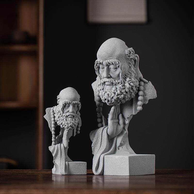 式悟20240723道摩祖师茶宠造摆件青中砂石鱼缸景家居达客厅玄关桌