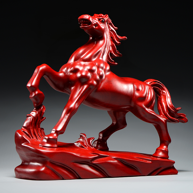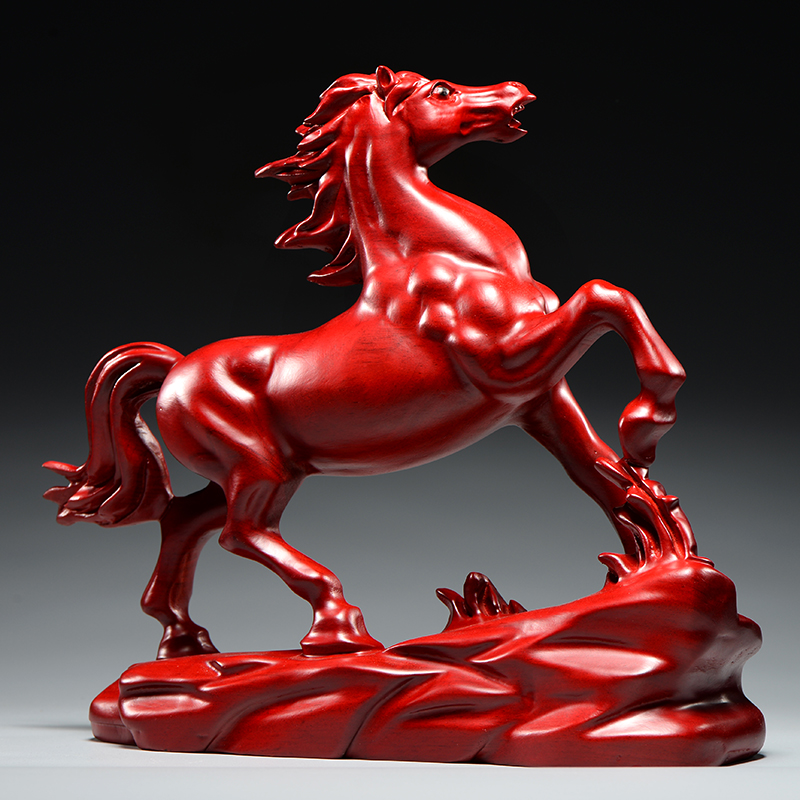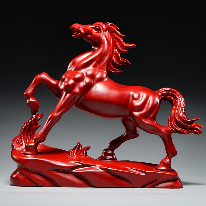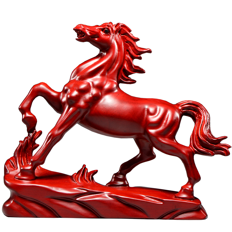 枣红色木制马摆件实木质雕刻十二生肖木头马到成功红木装饰工艺品